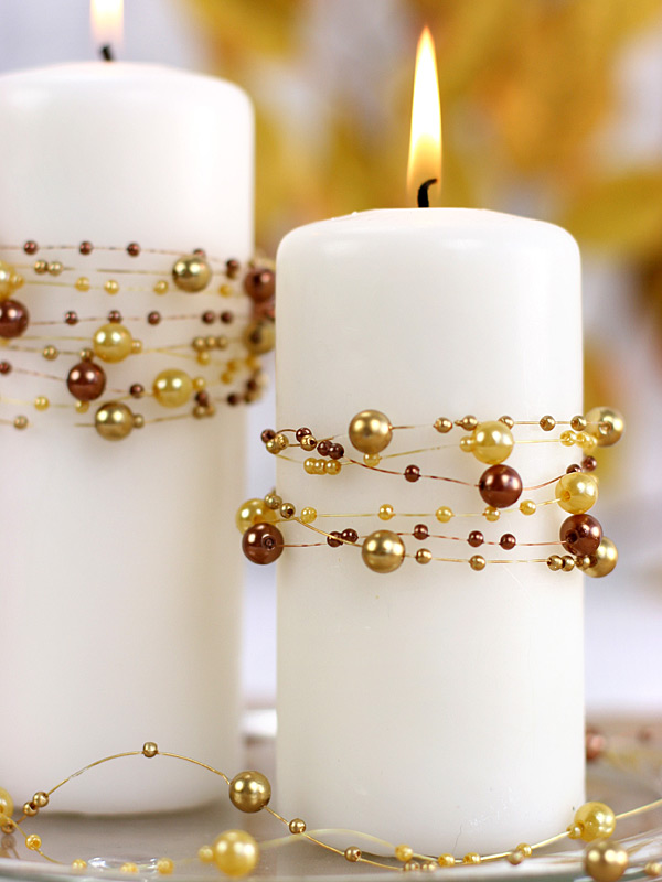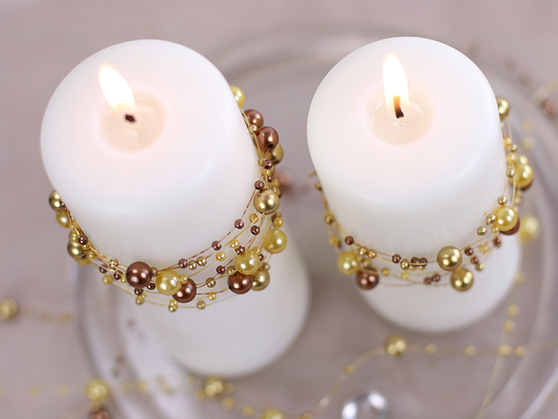 Pearl garlands, gold, 1.3m (1 pkt / 5 pc.)