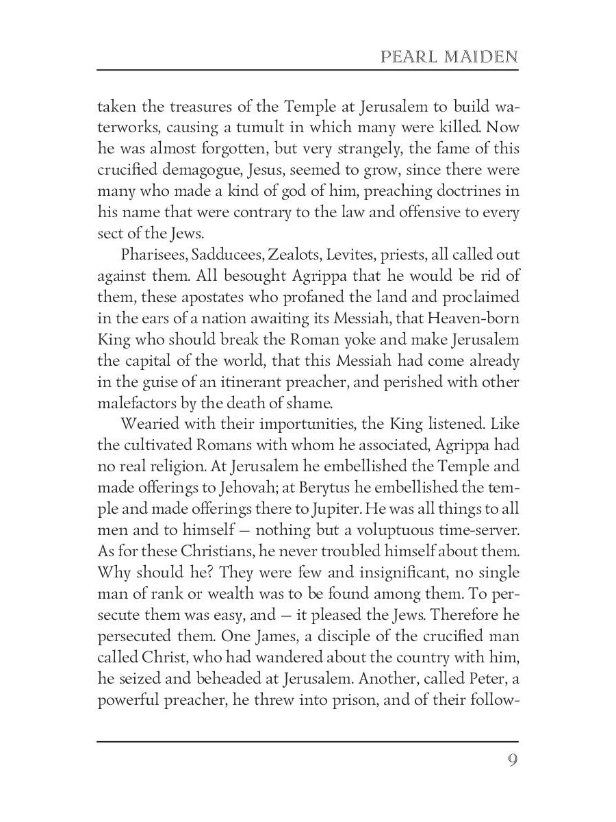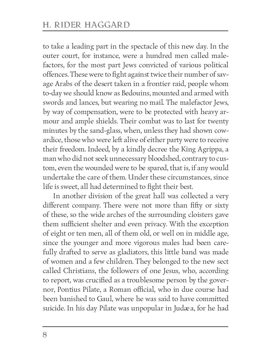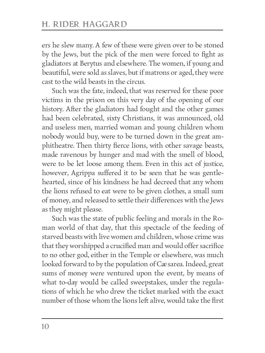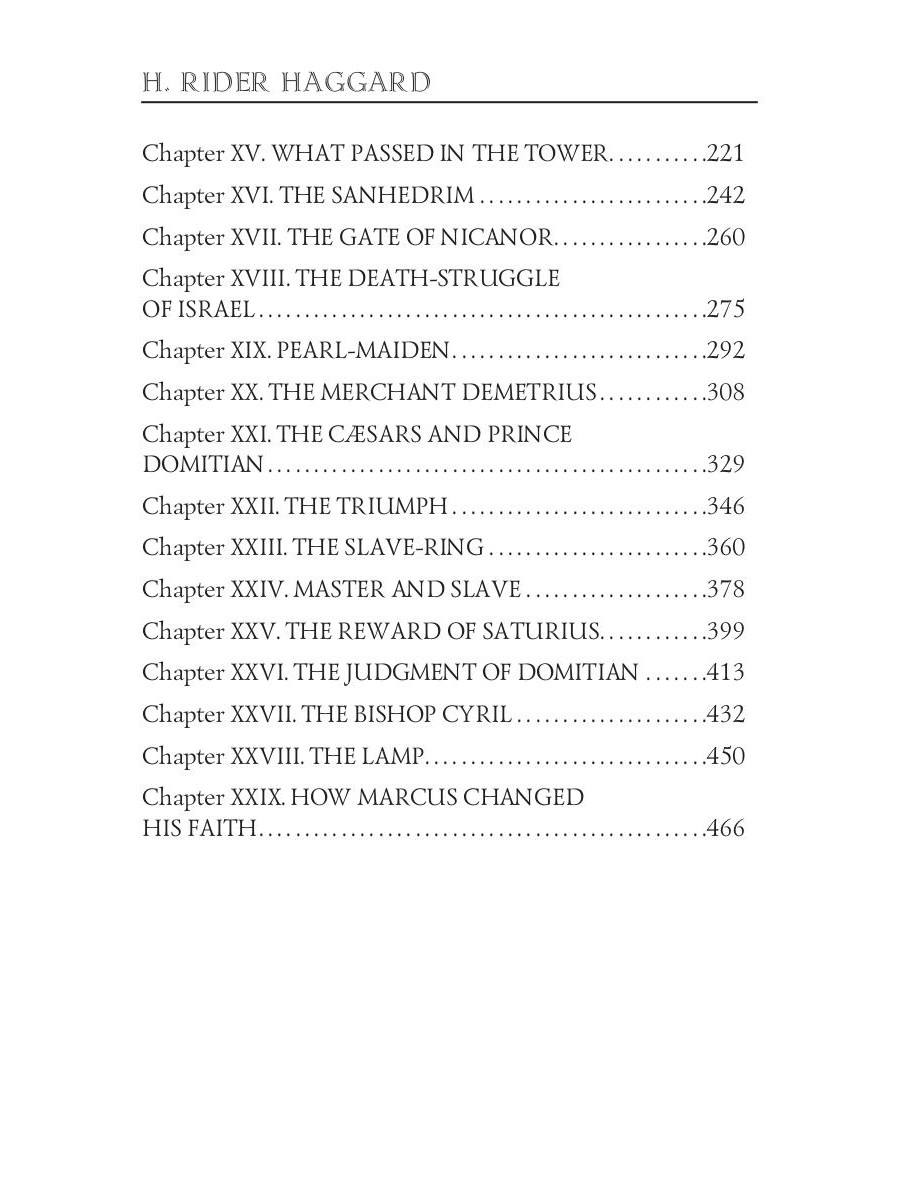 Haggard's faith-fortifying novel is a delicious blend of stirring events, captivating characters, and historical detail. The story is about the destruction of Jerusalem, about first-century life as they follow the hardships and trials of Miriam, a young believer; and Marcus, the Roman officer who wishes to marry her.