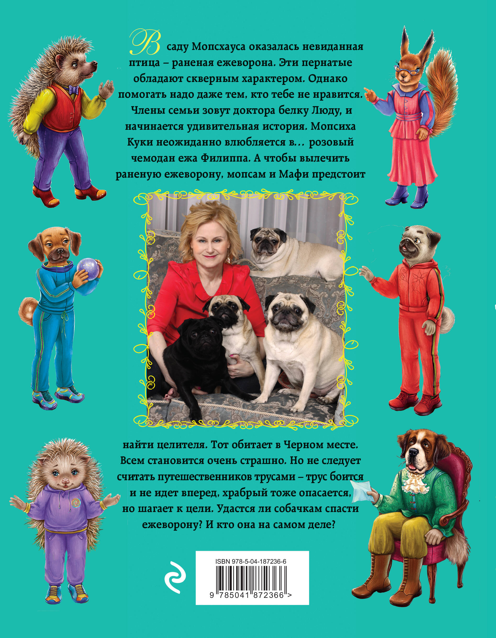 В саду Мопсхауса оказалась невиданная птица - раненая ежеворона. Эти пернатые обладают скверным характером. Однако помогать надо даже тем, кто тебе не нравится. Члены семьи зовут доктора белку Люду, и начинается удивительная история. Мопсиха Куки неожиданно влюбляется в… розовый чемодан ежа Филиппа. А чтобы вылечить раненую ежеворону, мопсам и Мафи предстоит найти целителя. Тот обитает в Черном месте. Всем становится очень страшно. Но не следует считать путешественников трусами - трус боится и не идет вперед, храбрый тоже опасается, но шагает к цели. Удастся ли собачкам спасти ежеворону? И кто она на самом деле?.. Серия сказочных повестей от известной писательницы Дарьи Донцовой! «Сказки Прекрасной Долины» - это книги для чтения всей семьей и в то же время - повод для важного разговора с детьми, а великолепные красочные иллюстрации делают их идеальным подарком. Каждая книга, помимо приключенческого сказочного сюжета, содержит поучительные мотивы, вплетенные в повествование без малейшей назидательности.| Издательство | ООО "Издательство "Эксмо" |