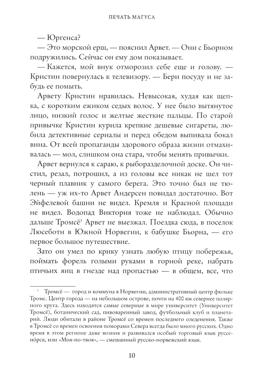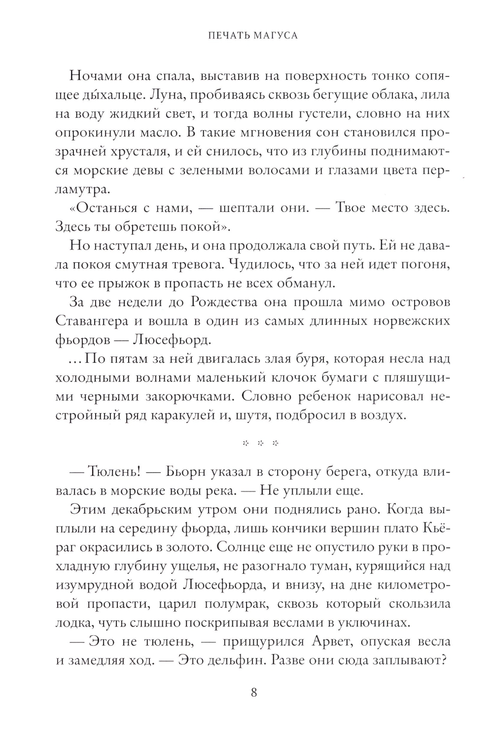 Дженни Далфин удалось невероятное - она сбежала из плена колдуна Альберта Фреймуса. Переплыв в облике дельфина Северное море, девушка оказывается в Норвегии, где ей все чуждо и нет пути назад. Только юный саам Арвет Андерсен предлагает Дженни помощь, но может ли она ему доверять? Может ли она доверять хоть кому-то? Следом за Дженни Далфин идет тьма, которую не остановят никакие человеческие преграды, а девушка слишком устала, чтобы бороться. Но потрепанный в схватке с темником Магус еще жив! И приемный дед Дженни Марко Франчелли перевернет небо и землю, лишь бы вернуть внучку домой. Даже если ему это будет стоить жизни или свободы.| Издательство | Абрикобукс |