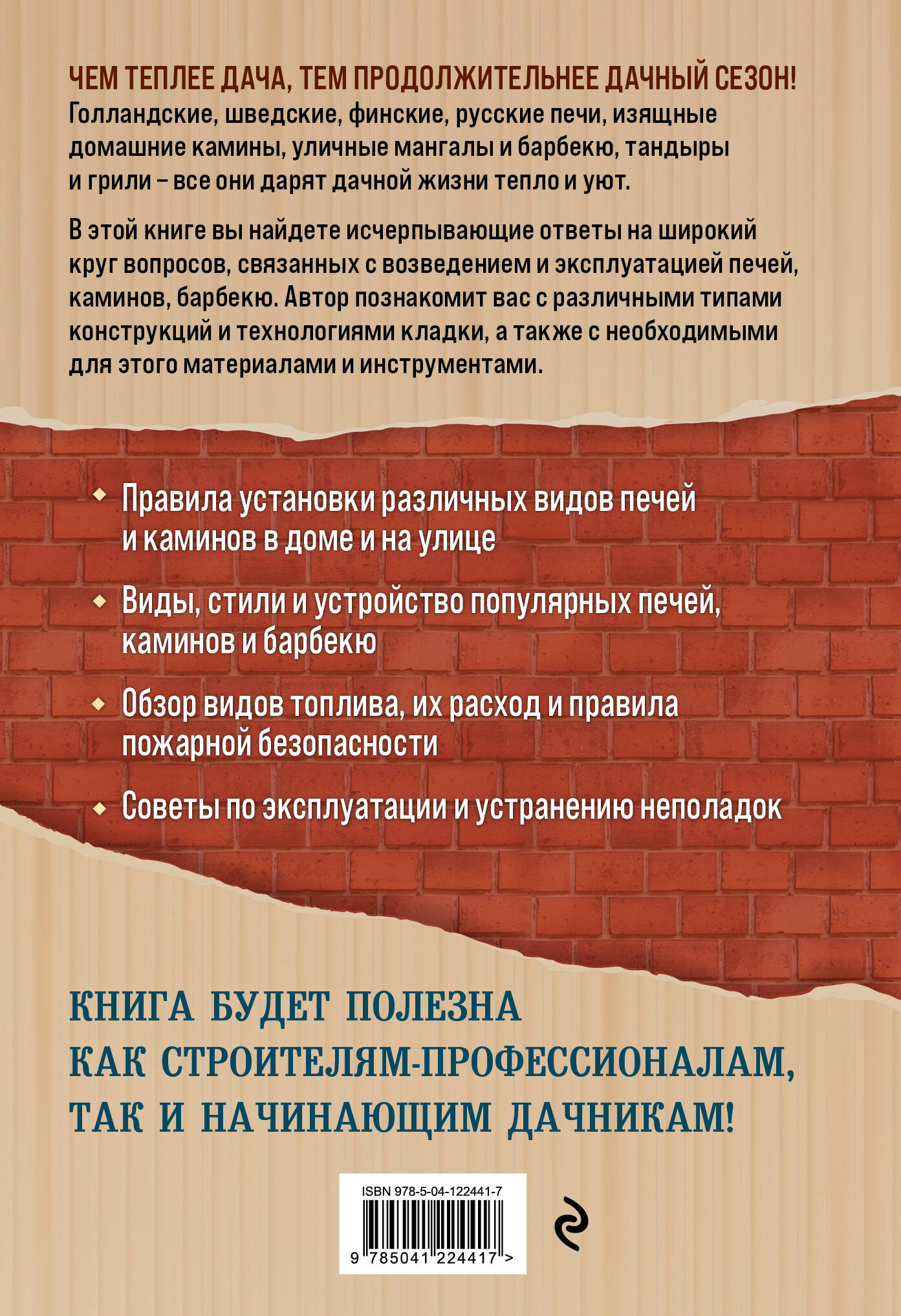 Книга охватывает широкий круг вопросов, связанных с возведением и эксплуатацией печей и каминов. Вы познакомитесь с различными типами конструкций и технологиями кладки, а также с необходимыми для этого материалами и инструментами. В книге приведены правила установки каминов и печей в доме и на улице, а также советы по устранению неполадок. Книга будет полезна и строителям-профессионалам, и дачникам, познающим азы печного дела.| Издательство | ООО "Издательство "Эксмо" |