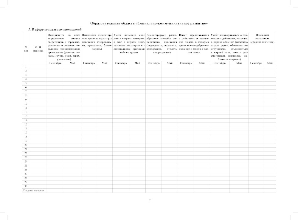 Педагогическая диагностика индивидуального развития детей 3-4 лет в общеобразовательной/комбинированной группе детского сада