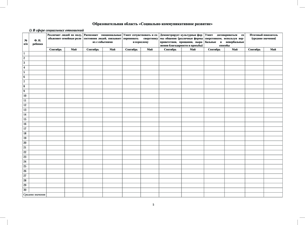 Педагогическая диагностика индивидуального развития детей 4-5 лет в общеобразовательной/комбинированной группе детского сада