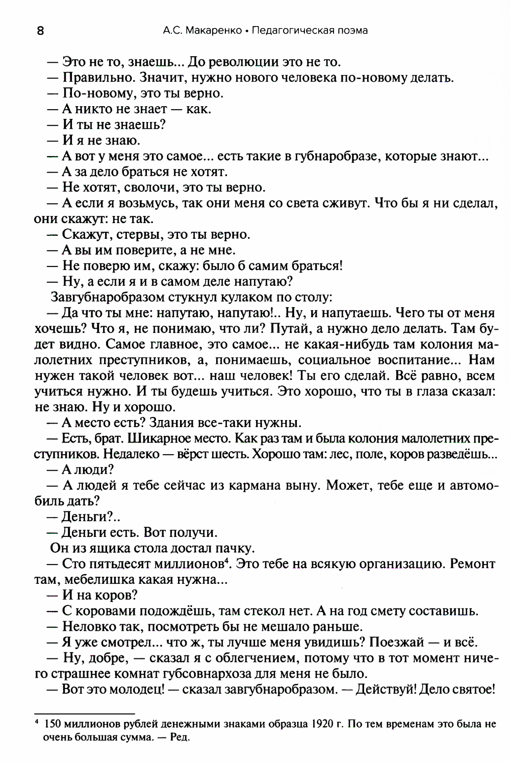 «Педагогическая поэма» - широко известное во всём мире и наиболее значительное произведение советского педагога и писателя Антона Семёновича Макаренко (1888-1939). Средствами художественной прозы автор описывает создание под Полтавой колонии им. Горького (1920-1928) и её насыщенную, порой драматическую жизнь. А. С. Макаренко весьма успешно перевоспитывал и возвращал в полноценную культурную и общественную жизнь несовершеннолетних беспризорников и правонарушителей на основе посильного общественно полезного труда, продуманного и разумного привлечения воспитанников к управлению коллективом, единства доверия и требовательности ко всем членам коллектива, включая преподавателей и вольнонаёмных мастеров. На создание «Педагогической поэмы» у автора ушло десять лет (1925-1935). Судьба этого произведения оказалась сложной. В 30-е годы оно изымалось из библиотек, а в послевоенное время печаталось огромными тиражами. Одно можно сказать наверняка: эта работа по праву входит в число жемчужин мировой педагогической мысли. И идеи, в ней высказанные, и опыт, в ней аккумулированный, в течение долгого времени будут служить педагогам разных поколений. В настоящем издании представлен полный, неподцензурный вариант произведения.| Издательство | Амрита-Русь |