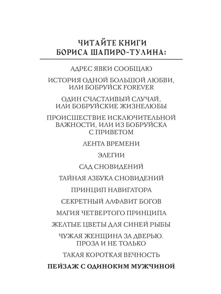 Книга «Пейзаж с одиноким мужчиной» включает в себя три произведения. Первое из них, «Брат Иисуса», - интерпретация библейской истории Христа глазами человека, который считает себя его кровным родственником. Главный герой второго произведения - «Возможность Невозможного» - совершает путешествие во времени и пространстве, в котором неожиданно сталкивается с неизвестными фактами из биографии Ульянова-Ленина. Третья, заключительная часть сборника - «Желтые цветы для синей рыбы». Роман в осколках. «Осколки» символизируют разбившееся на части историческое пространство от Земли обетованной до маленького белорусского городка. В этом пространстве тянутся друг к другу не только псалмы Давида и кантата Баха, не только фрески Джотто и картины Пикассо, но, что самое важное, - еще и осколки обычной человеческой жизни. Нарочитое смешение жанров и стилей от так называемой «мистерии» до фрагментов в духе соц-арта позволило автору сборника объединить крупные исторические события с перипетиями любви и роковой страсти основных персонажей, которым жизненно необходимо получить ответ на главный вопрос - в чем, собственно, состоит смысл их появления на нашей планете.| Издательство | Т8 RUGRAM |