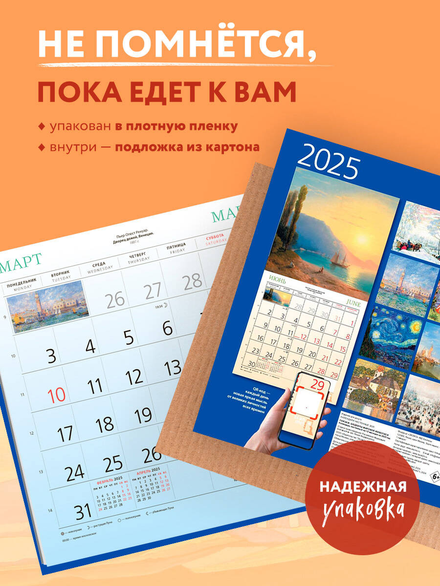 О календаре: В этом настенном перекидном календаре на 2025 год представлены знаменитые картины великих художников. Повесьте этот календарь в своем доме или на рабочем месте, и он достойно украсит любой интерьер. А календарный блок напомнит о важных событиях года. В центре календаря помещен большой арт-постер, который может стать отдельным декоративным украшением интерьера. О серии: Наши настенные календари отличаются высоким качеством исполнения! Тщательно подобранные иллюстрации, напечатанные на глянцевой бумаге высочайшего качества, станут настоящим украшением дома, а в календарной сетке найдется место для ваших планов: большие клетки позволят делать записи и организовать свой год! В календаре также отмечены все государственные праздники. В серии настенных календарей издательства «ЭКСМО» каждый найдет тему по вкусу: великие художники, великолепные подборки с самыми знаменитыми произведениями искусства, легендарные кинематографические саги и игры, главные книжные авторы и бестселлеры, фотографии и иллюстрации любимых животных и многое-многое другое! Для кого: Высокое качество полиграфического исполнения прекрасно дополняет репродукции шедевров живописи, что непременно будет по достоинству оценено людьми с хорошим вкусом. Технические параметры: Тип календаря - настенный перекидной Год - 2025 Календарная сетка - с разбивкой по месяцам Вид скрепления - скрепка Ширина - 30 см Высота - 30 см Внутренний блок - мелованная бумага 130 г/м2 Подложка - плотный гофрокартон для поддержания формы Индивидуальная упаковка в плотный целлофановый пакет.| Издательство | ООО "Издательство "Эксмо" |