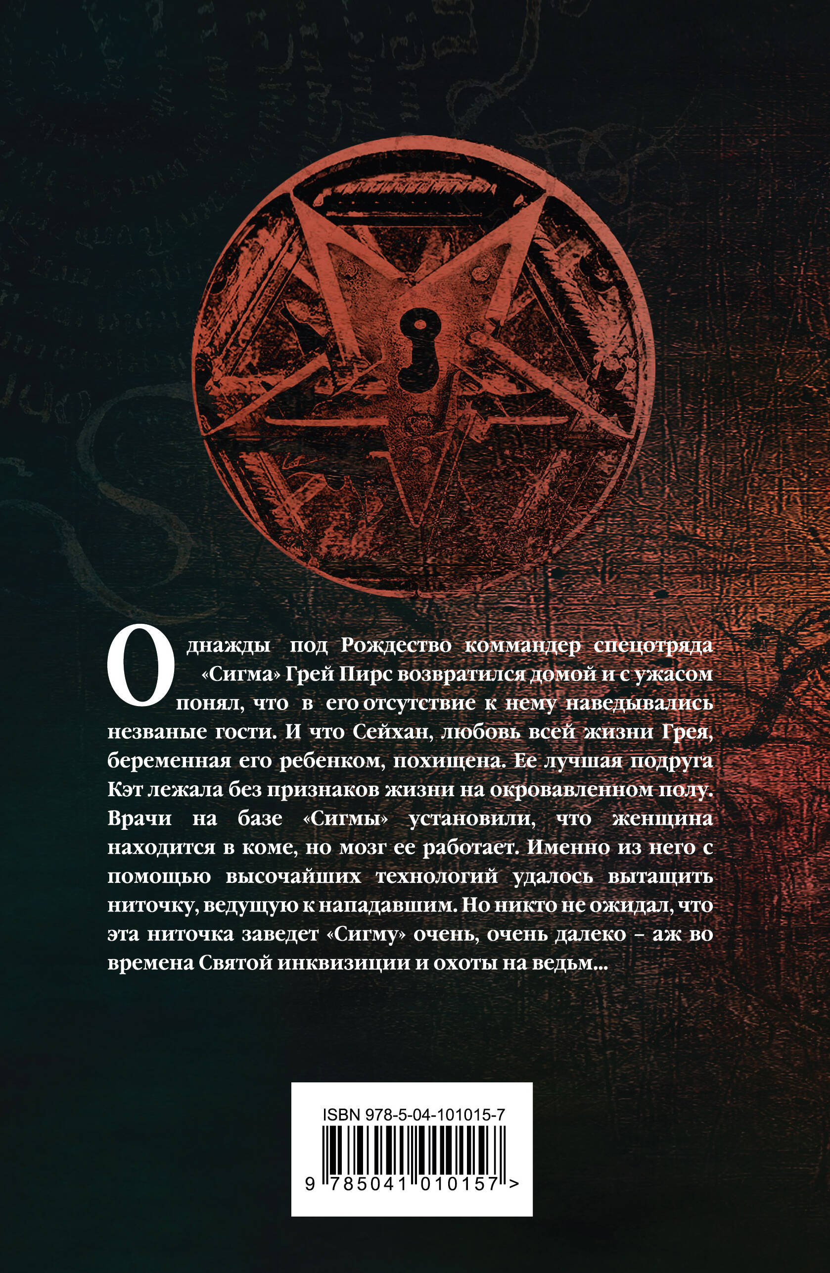 Роман переведен более чем на 40 языков мира Однажды под Рождество коммандер спецотряда «Сигма» Грей Пирс возвратился домой - и с ужасом понял, что в его отсутствие к нему наведывались незваные гости. И что Сейхан, любовь всей жизни Грея, беременная его ребенком, похищена. Ее лучшая подруга Кэт лежала без признаков жизни на окровавленном полу. Врачи на базе «Сигмы» установили, что женщина находится в коме, но мозг ее работает. Именно из него, с помощью высочайших технологий, удалось вытащить ниточку, ведущую к нападавшим. Но никто не ожидал, что эта ниточка заведет «Сигму» очень, очень далеко - аж во времена Святой инквизиции и охоты на ведьм…| Издательство | ООО "Издательство "Эксмо" |