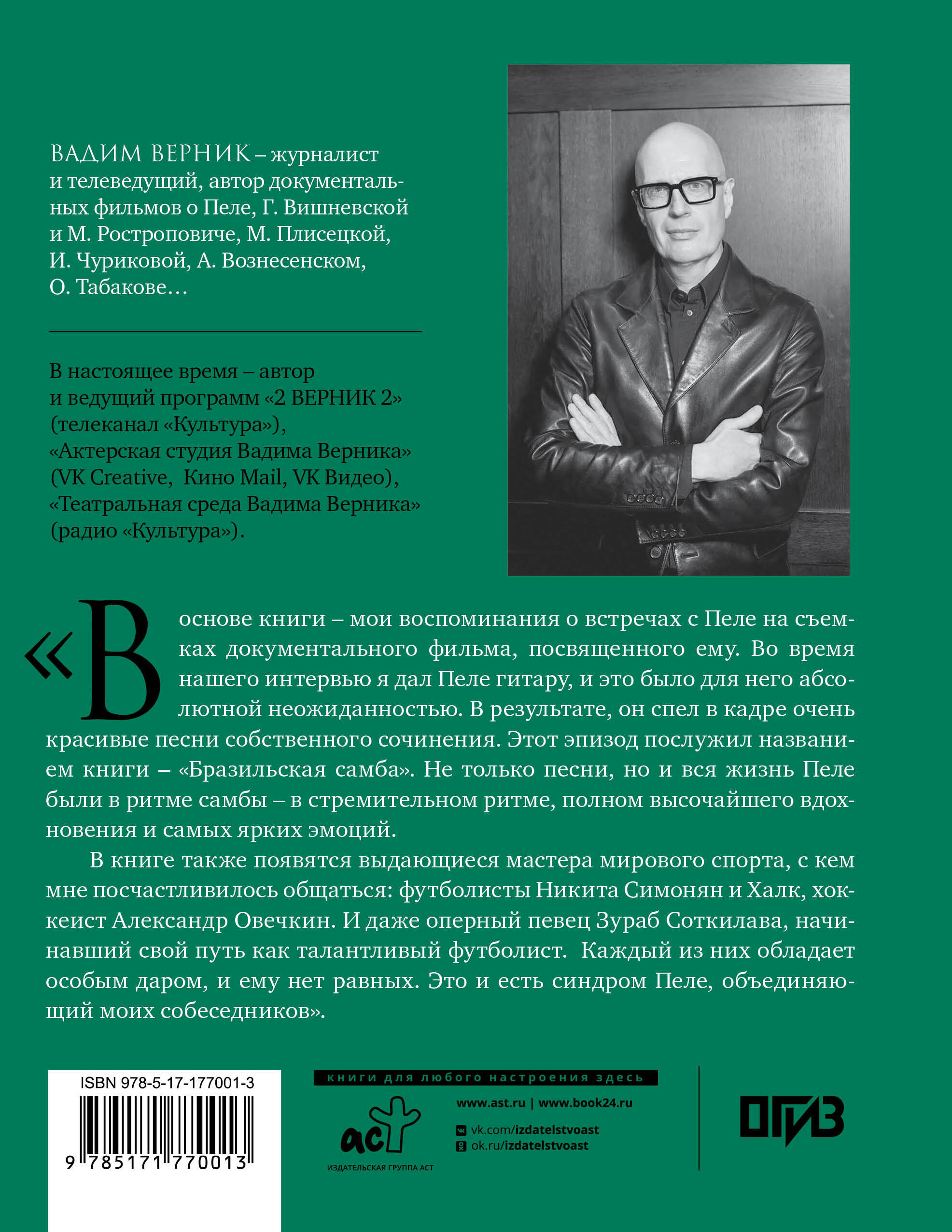 Книга о легенде мирового футбола Пеле продолжает серию воспоминаний Вадима Верника о выдающихся личностях XX века. В основе книги - личные впечатления автора о встрече с кумиром миллионов, который был героем его документального фильма. Разговор идет прежде всего не о забитых голах и спортивных достижениях, широко известных публике, а о душевных переживаниях, внутренних метаниях, о жизненном пути, полном счастливых моментов и драматических историй. Героями книги также стали легенды спорта Никита Симонян, Александр Овечкин, Халк и звезда мировой оперы Зураб Соткилава. Каждый со своей мечтой, со своей судьбой и со своей победой. Книга подготовлена к 85-летию со дня рождения великого футболиста.| Издательство | Издательство "АСТ" |