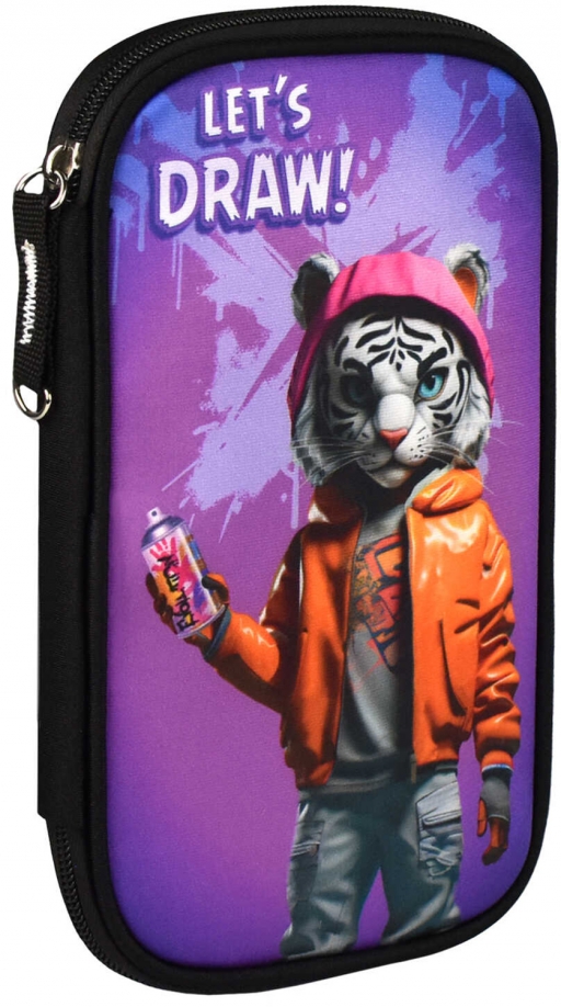 Пенал школьный Феникс+, арт.65504/ 24 БЕЛЫЙ ТИГР 13,3х21х2,5 см, полиэстер, молния, сублимационная печать, ПЭТ-пакет).