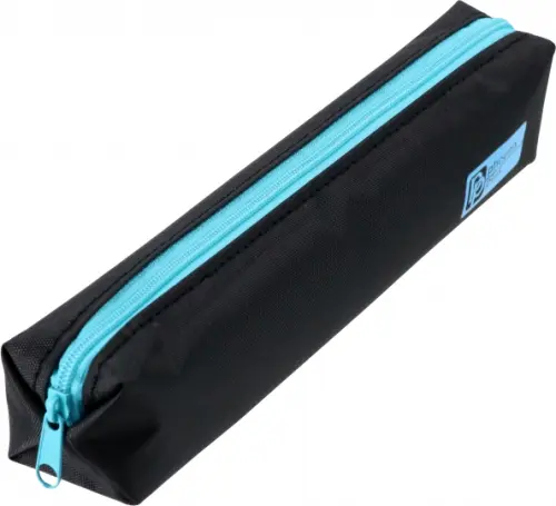 Пенал школьный Феникс+, арт.65305/ 30 ЧЁРНЫЙ С ГОЛУБЫМ (без наполнения, 20x3,5x3,5 см, полиэстер, молния, шелкография, ПЭТ-пакет).