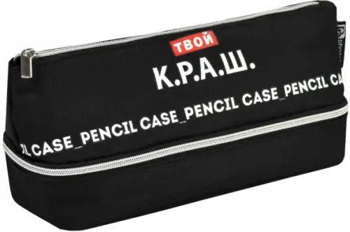 Пенал школьный Феникс+, арт.65249/ 30 ФРАЗЫ С ХАРАКТЕРОМ (без наполнения, 20х8,5х8,5 см, 2 отделения, полиэстер, молния, шелкография, ПЭТ-пакет).