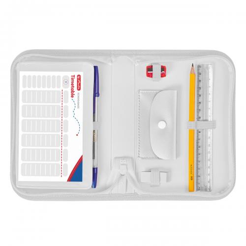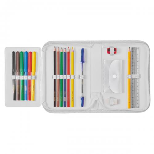 Материал: полиэстер Размер: 19,3 х 13,5 х 3,5 см Карандаш с 19 предметами Обычный карандаш, линейка, ластик, пост, Mac, шариковая ручка + одно свободное место ручки, 6 фломастер, 6 цветных карандашей