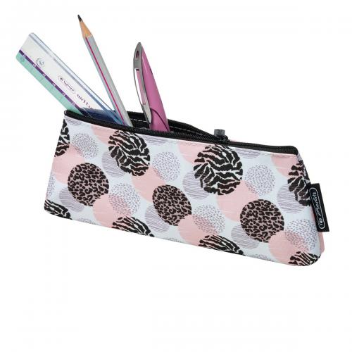 Размеры: 220 х 20 х 90 мм, Трапециевидная форма, большой отсек с молнией, цветная внутренняя подкладка