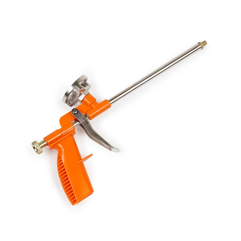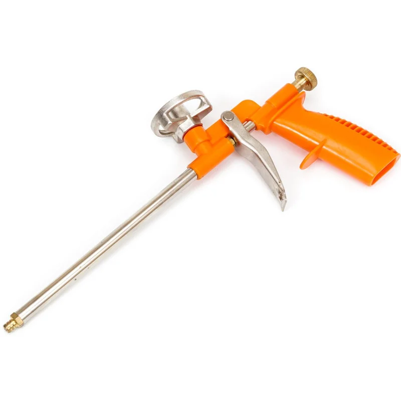 Пенный пистолет Polax - это недорогой и качественный инструмент, который используется для более точного нанесения пены на строительные поверхности для герметизации швов и стыков шириной до 2 см. Пистолет используется для работы с полиуретановой пеной в баллонах, адаптированных к насадке пистолета. Регулировочный винт, гайка-прокладка, сопло пистолета изготовлены из медного сплава, что позволяет продлить срок службы пистолета. Медный сплав также обладает антиадгезионными свойствами (антипригарными). Это упрощает процесс очистки пистолета от прилипшей пены. Полная герметичность корпуса пистолета позволяет оставлять баллон с пеной подключенным после его использования, а пена гарантированно не засохнет в течение 20 дней. Равномерная направленная подача пены в сочетании с прочной и эргономичной пластиковой ручкой способствует более точному и комфортному выполнению поставленных задач.