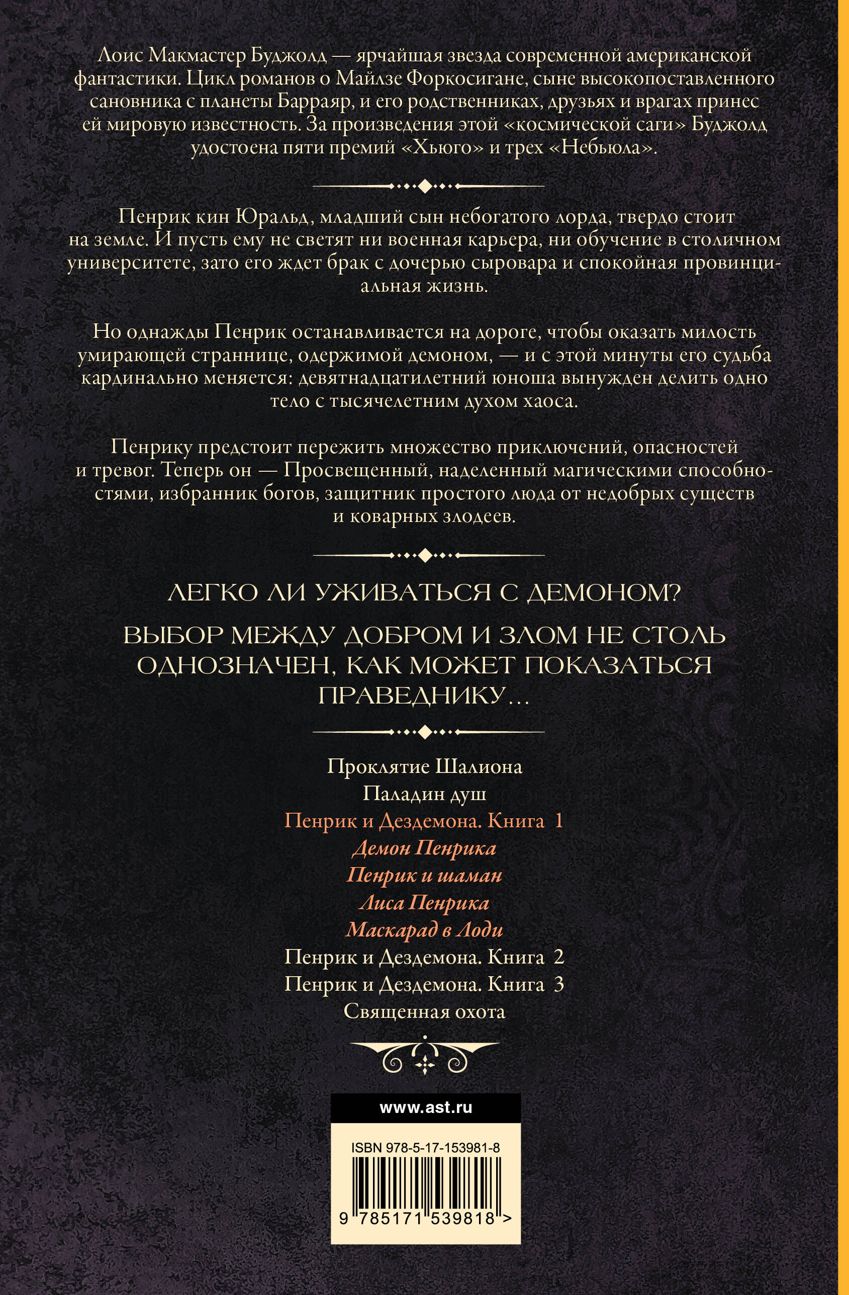От автора культового цикла «Барраяр». Для всех поклонников классического фэнтези. Первая книга о Пенрике и Дездемоне. Пенрик кин Юральд - младший сын небогатого провинциального лорда, и еще недавно вся его жизнь была расписана наперед. Ему не светили ни военная карьера, ни обучение в столичном университете, а самым волнительным событием была женитьба на дочери местного сыровара. Однако все изменилось, стоило только Пенрику обрести собственного демона, живущего внутри его тела. Теперь Пенрику и демону, получившему имя Дездемона, светит жизнь насыщенная и полная интересных событий: в ней будут расследования преступлений, борьба со злодеями и чудовищами, секретные миссии и прочие приключения.| Издательство | Издательство "АСТ" |