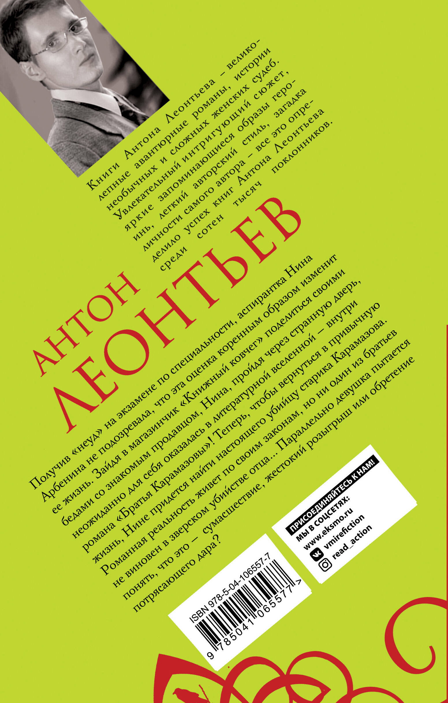 Получив "неуд" на экзамене по специальности, аспирантка Нина Арбенина не подозревала, что эта оценка коренным образом изменит ее жизнь. Зайдя в магазинчик "Книжный ковчег" поделиться своими бедами со знакомым продавцом, Нина, пройдя через странную дверь, неожиданно для себя оказалась в литературной вселенной - внутри романа "Братья Карамазовы"! Теперь, чтобы вернуться в привычную жизнь, Нине придется найти настоящего убийцу старика Карамазова. Романная реальность живет по своим законам, но ни один из братьев не виновен в зверском убийстве отца... Параллельно девушка пытается понять, что это - сумасшествие, жестокий розыгрыш или обретение потрясающего дара?| Издательство | ООО "Издательство "Эксмо" |