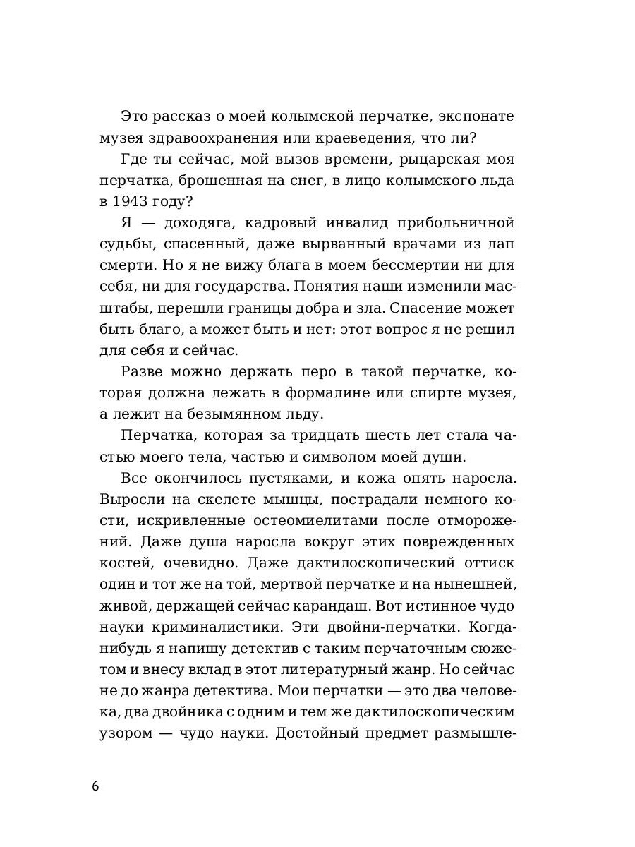 Трудом жизни В. Т. Шаламова считается цикл рассказов и очерков «Колымские рассказы», повествующий о жизни советских заключенных, состоящий из шести сборников («Колымские рассказы», «Левый берег», «Артист лопаты», «Очерки преступного мира», «Воскрешение лиственницы» и «Перчатка, или КР-2»). В. Т. Шаламов настаивал, что цельными произведениями являются именно сборники с сохранением порядка, в котором расположены рассказы. В эту книгу вошел авторский сборник «Перчатка, или КР-2».| Издательство | Т8 RUGRAM |