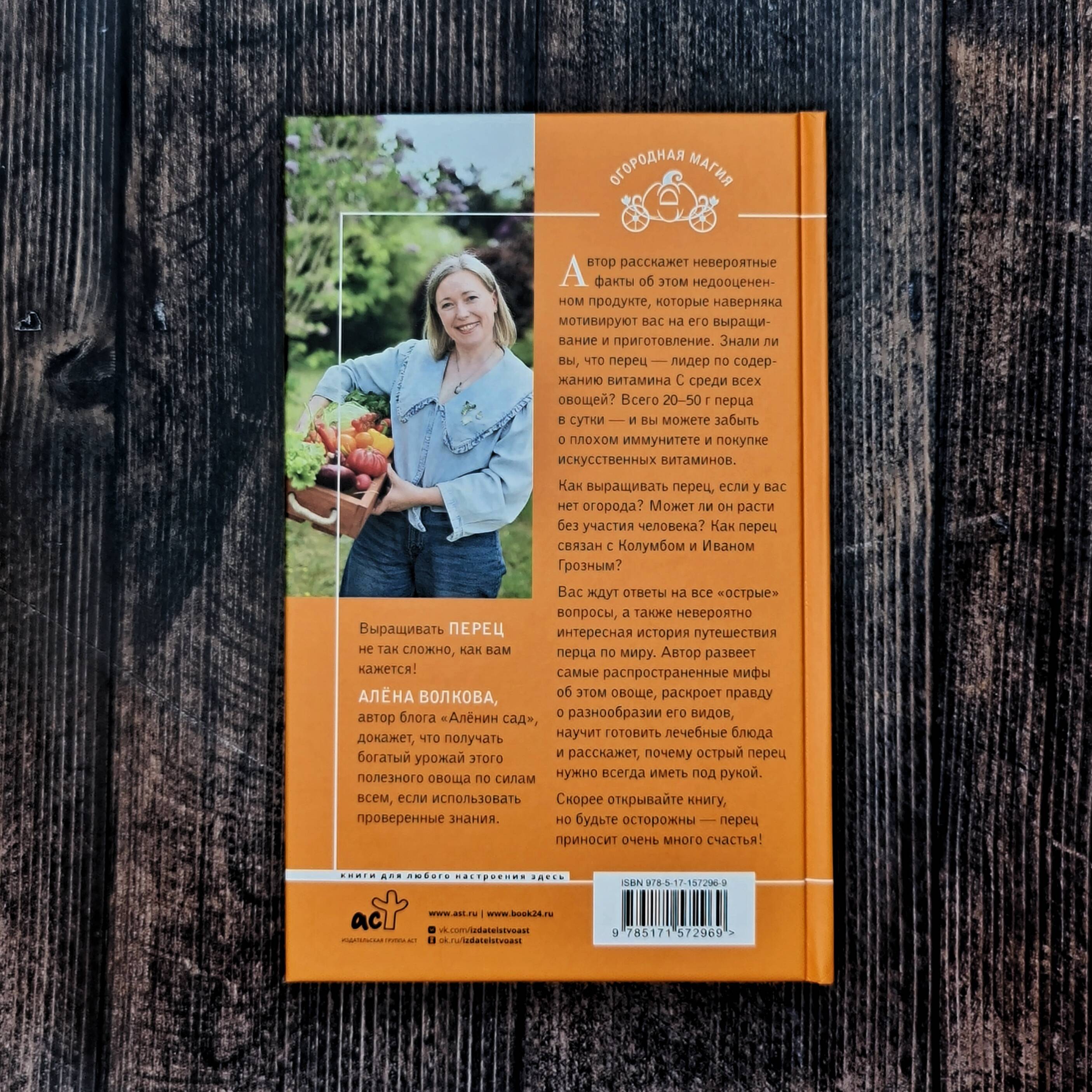 Сладкий перец или поострее? Какой бы сорт этого культурного растения вы не предпочитали, представить огородную жизнь без перца невозможно, ведь перец невероятно вкусный и полезный овощ. И, какую бы степень остроты перца вы не выбрали, блюда из него будут обладать неповторимой изюминкой. Но как «приручить» перец, если среди огородников ходят байки о сложности выращивания перца? Книга кандидата биологических наук, садовода с 10-летним стажем, автора канала на ютуб «Аленин сад» Алены Волковой «Перец. Выращиваем, ухаживаем и едим» поможет вам пропустить этап проб и ошибок на своих грядках, и приручить своенравный перец. Благодаря книге «Перец» вы узнаете секреты выращивания самых популярных и вкусных сортов перцев: как подготавливать грядку, какие выбирать семена, как удобрять перец, как работать с рассадой, как определить срок посева, как поливать и ухаживать, чем подкармливать и лечить, как собирать и хранить. Вы узнаете историю происхождения этого культурного растения, научитесь определять остроту перца, и готовить аппетитные блюда с перцем: пасту болоньезе со сладким перцем; перец, запеченный с мягким сыром; фаршированный перец и даже настойку «Перцовка».| Издательство | Издательство "АСТ" |