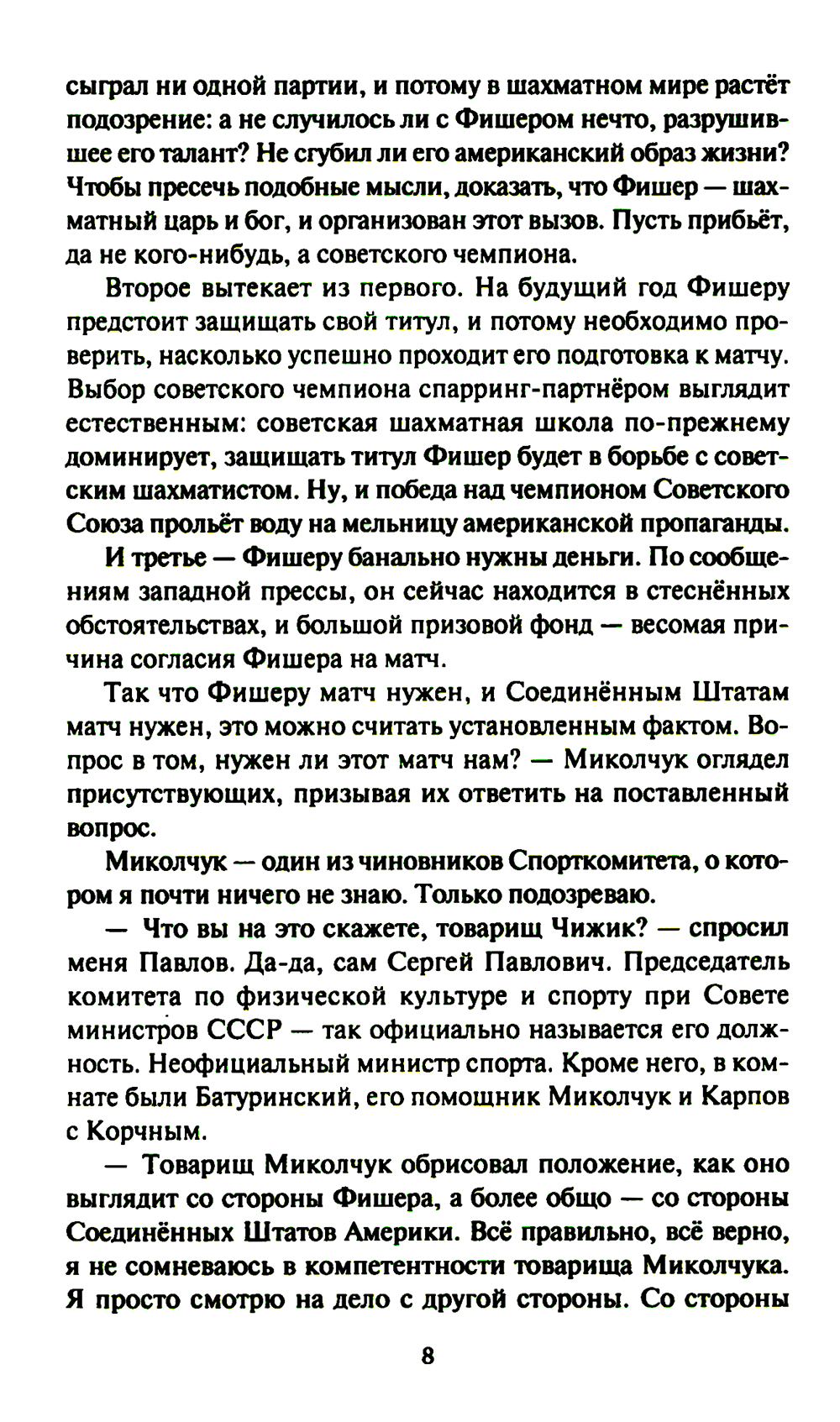 Чижику бросил вызов Роберт Джеймс Фишер. Что ж, отчего бы и не сыграть с ним матч? Но за шахматами стоит политика: и Фишера, и Чижика хотят видеть лишь послушными фигурами. Теми фигурами, которые не грех и пожертвовать, если дело того потребует.| Издательство | Престиж Бук |