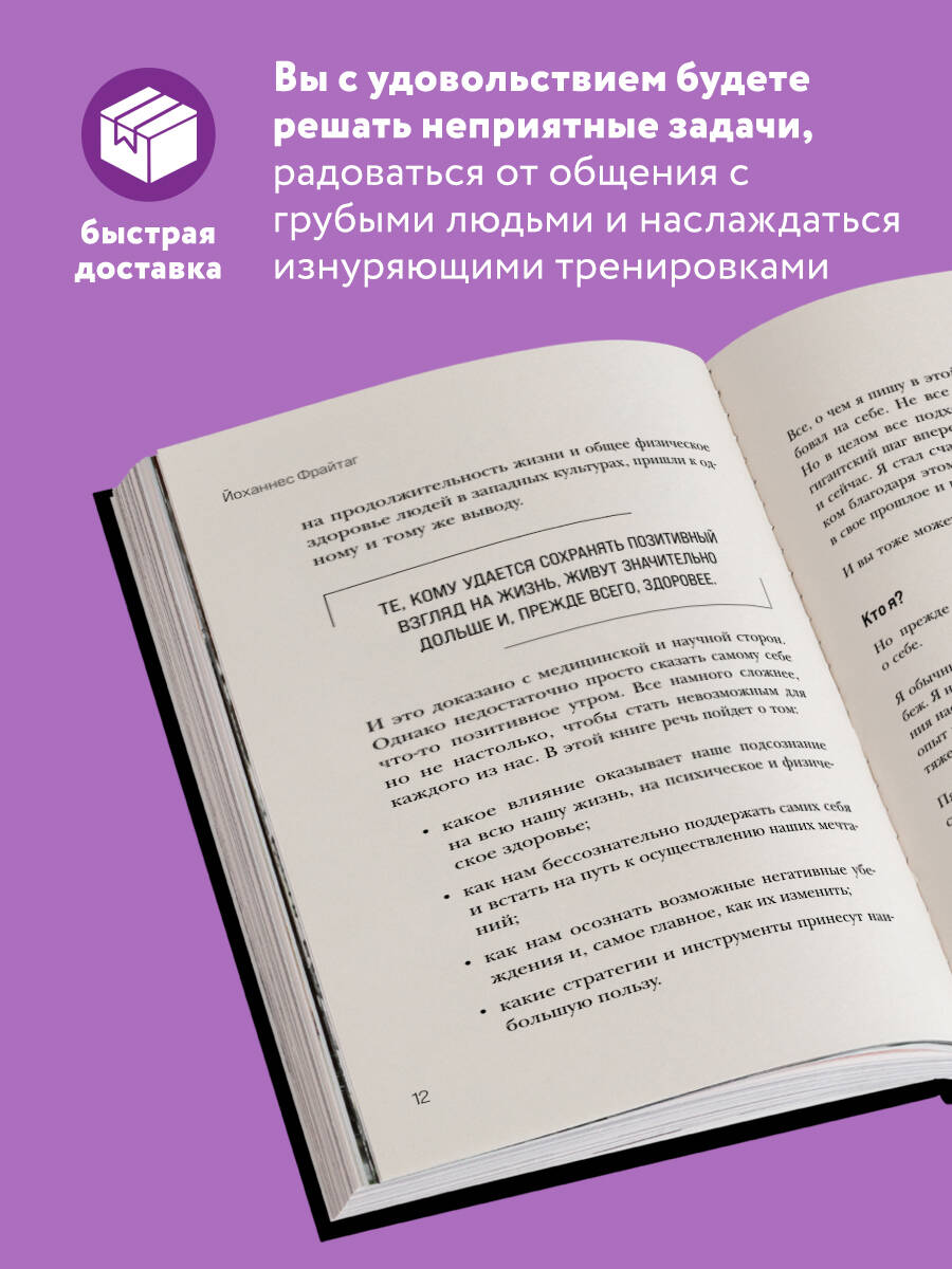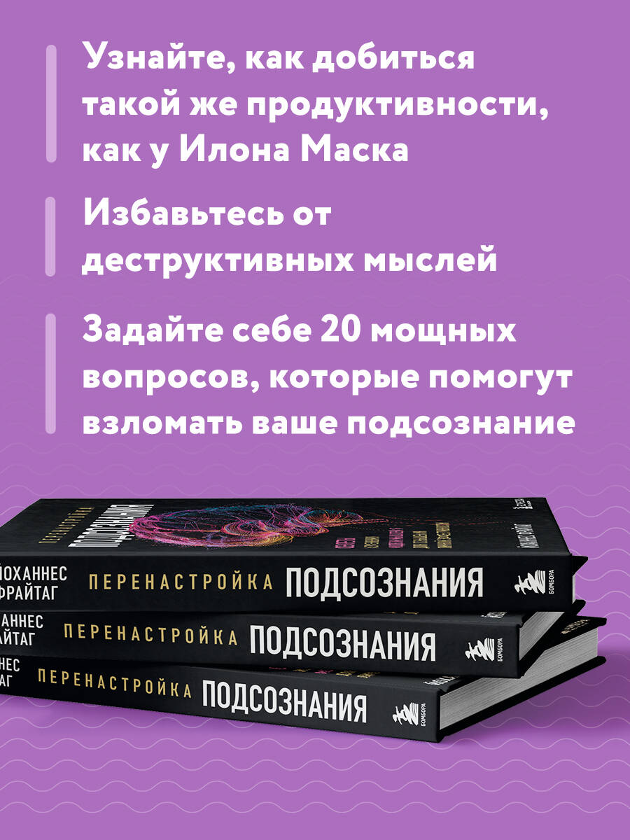 Только 5% ваших решений контролируются сознанием, а 95% принимаются бессознательно. В своей новой книге Йоханнес Фрайтаг, исследователь работы мозга, объясняет, как запрограммировать свой разум таким образом, чтобы сложные нейронные процессы работали на вас. С помощью его методики вы с удовольствием будете решать неприятные задачи, радоваться от общения с грубыми людьми и наслаждаться изнуряющими тренировками. Перенастроив свое сознание, вы: - узнаете, как добиться такой же продуктивности, как у Илона Маска; - избавитесь от деструктивных мыслей; - зададите себе 20 мощных вопросов, которые помогут взломать ваше подсознание; - увидите, как излишнее потребление сахара тормозит работу мозга.| Издательство | ООО "Издательство "Эксмо" |
