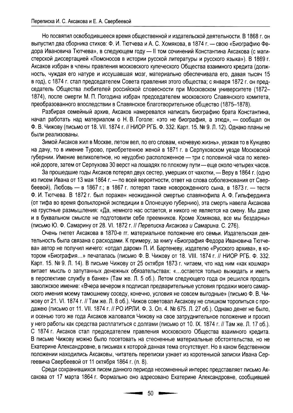 Переписка И. С. Аксакова и Е. А. Свербеевой (1861–1885). Славянофильский архив. Кн. 5