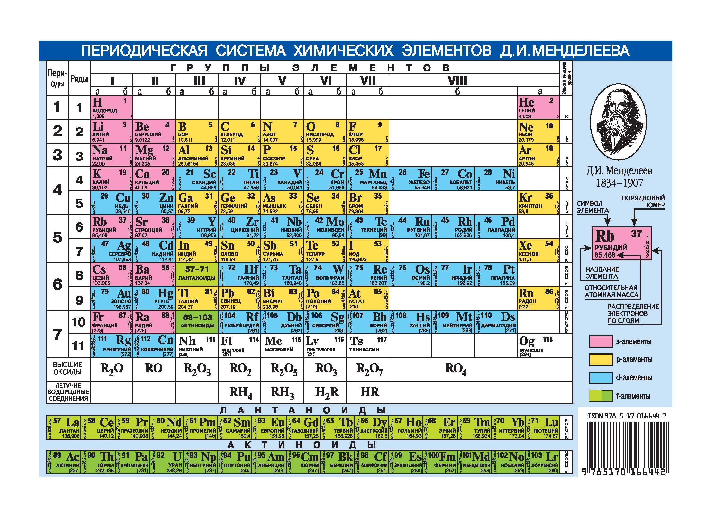 Периодическая система химических элементов Д.И.Менделеева. Растворимость кислот,