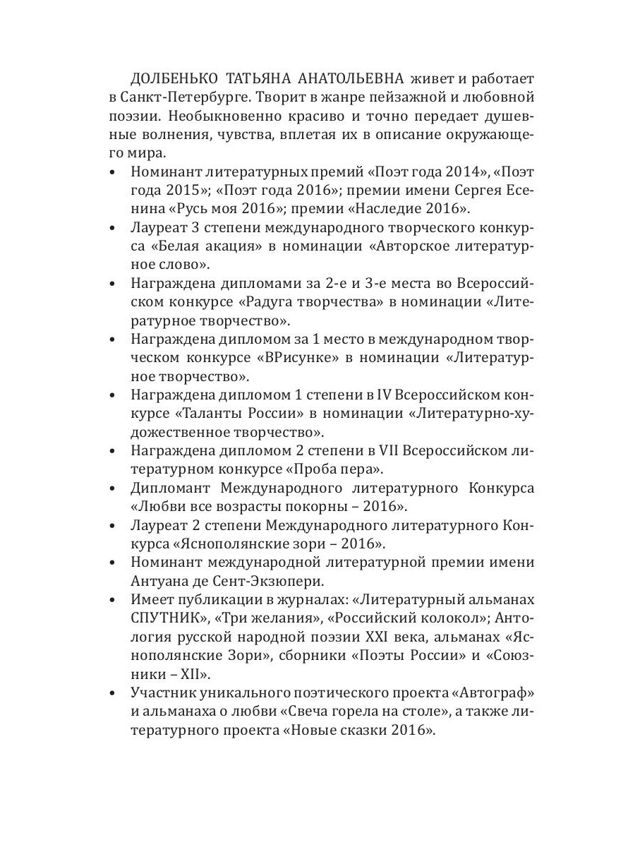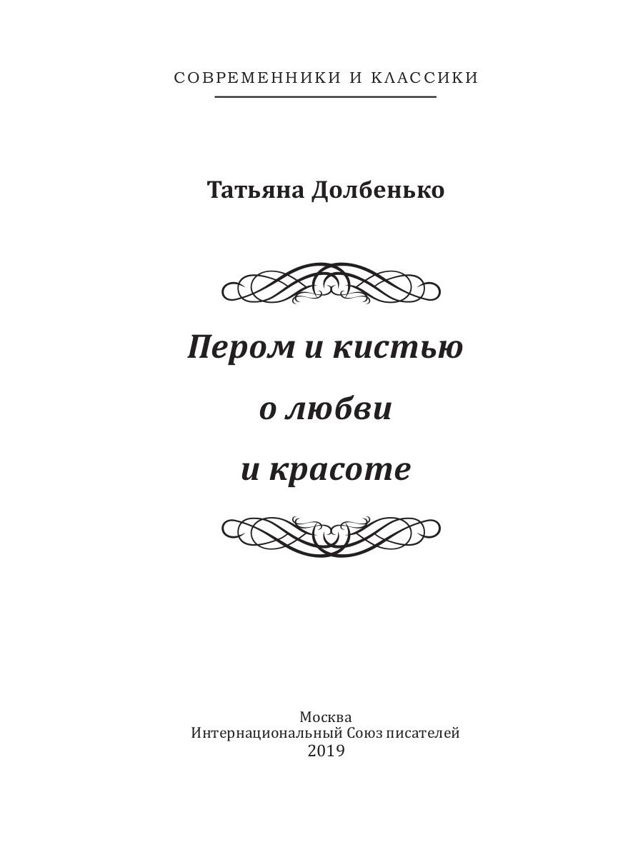 Эта книга - калейдоскоп чувств и красок от петербургской поэтессы Татьяны Долбенько и ярких мастеров мировой живописи. И объединяют их Любовь и Красота.