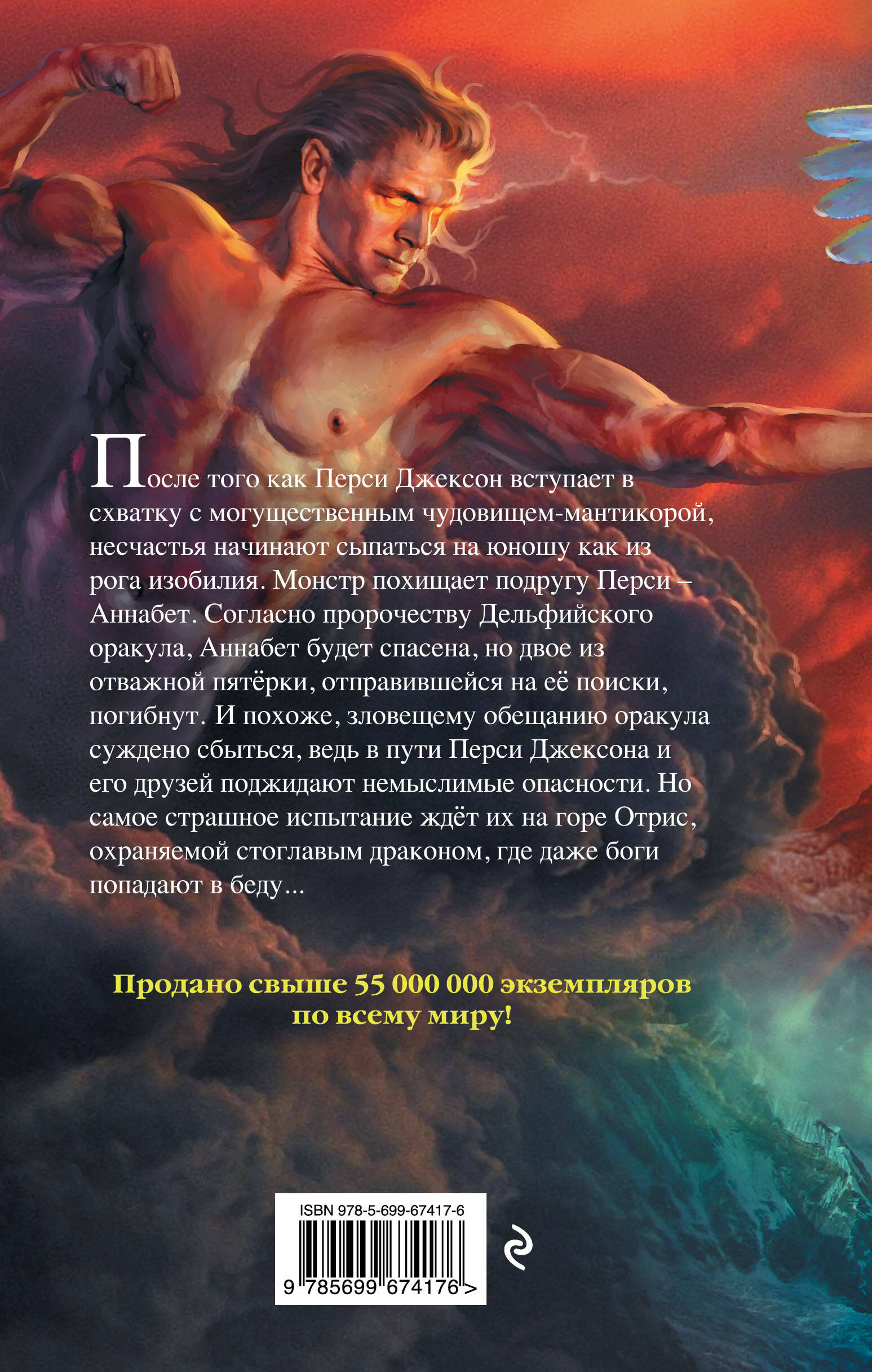 После того как Перси Джексон вступает в схватку с могущественным чудовищем-мантикорой, несчастья начинают сыпаться на юношу как из рога изобилия. Монстр похищает подругу Перси - Аннабет. Согласно пророчеству Дельфийского оракула, Аннабет будет спасена, но двое из отважной пятерки, отправившейся на ее поиски, погибнут. И, похоже, зловещему обещанию оракула суждено сбыться, ведь в пути Перси Джексона и его друзей поджидают немыслимые опасности. Но самое страшное испытание ждет их на горе Отрис, охраняемой стоглавым драконом, где даже боги попадают в беду... Рик Риордан - автор многомиллионных бестселлеров для подростков, автор № 1 в детской литературе по версии престижного издания New York Times. Писатель умело сталкивает древнегреческую мифологию и современные реалии. Узнайте больше об олимпийских богах! Перси Джексон - герой-кумир миллионов! Это имя стало символом незабываемых приключений, а сам цикл уже давно является классикой подросткового фэнтези.| Издательство | Эксмо |