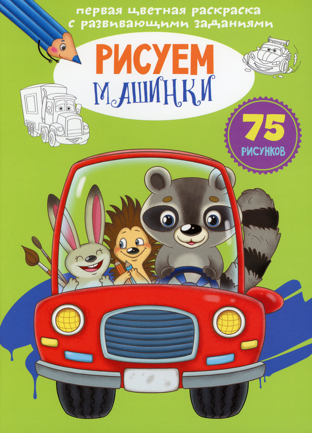 Первая цветная раскраска с развивающими заданиями. Рисуем машинки