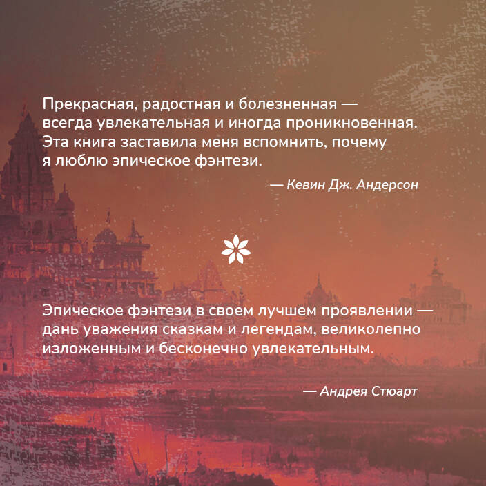 Перед вами эпическая сага о таинственном сказителе, который сплетает ложь и магию в историю, ставшей легендой. «Все легенды рождаются из истины. И полны лжи. Данная легенда моя. Вы можете судить меня по ней как хотите. Но сначала послушайте мою историю. Я похоронил деревню Ампур под горой льда и снега. Потом убил их бога. Я освоил древнюю магию и был проклят за это. Я развязал войну с теми, кто существовал до появления людей, и потерял принцессу, которую любил и хотел спасти. Я вызыватель молний и связующий огонь. Я - легенда. И я - чудовище. Меня зовут Ари. И это рассказ о том, как я выпустил на свободу первородное зло». Так начинается история сказителя и певицы, которые находятся в бегах и случайно сталкиваются в придорожной таверне. Но старые грехи не забыты, враги не хотят терять след. Прежняя жизнь стремительно настигает их, и, возможно, платить за это придется всему миру. Никто не может избежать своего прошлого, а все истории должны иметь свой финал. «История создана с терпением, страстью и, самое главное, огромной любовью». - Джим Батчер «Если вы любите "Имя ветра" и "Хитрости Локка Ламоры", то этот роман станет вашей следующей читательской зависимостью». - Дирк Эштон «Эпос, подобного которому нет, - грандиозный, размашистый, драматичный. Любовное письмо к фэнтези, пылающее страстью, жаром и мифологией Южной Азии. Читается как волшебство, а на вкус - как шафран». - Юдханджая Виджератне «Эпическое фэнтези в своем лучшем проявлении - дань уважения сказкам и легендам, великолепно изложенным и бесконечно увлекательным». - Андрея Стюарт «Богатое построение мира, обилие событий и хитроумных сюжетных поворотов. Очень рекомендую!» - Джонатан Мэйберри «Прекрасная, радостная и болезненная - всегда увлекательная и иногда проникновенная. Эта книга заставила меня вспомнить, почему я люблю эпическое фэнтези». - Кевин Дж. Андерсон «Это эпическое фэнтези, к которому нужно подойти с терпением, и тогда оно удовлетворит любого поклонника жанра». - Kirkus Reviews| Издательство | ООО "Издательство "Эксмо" |