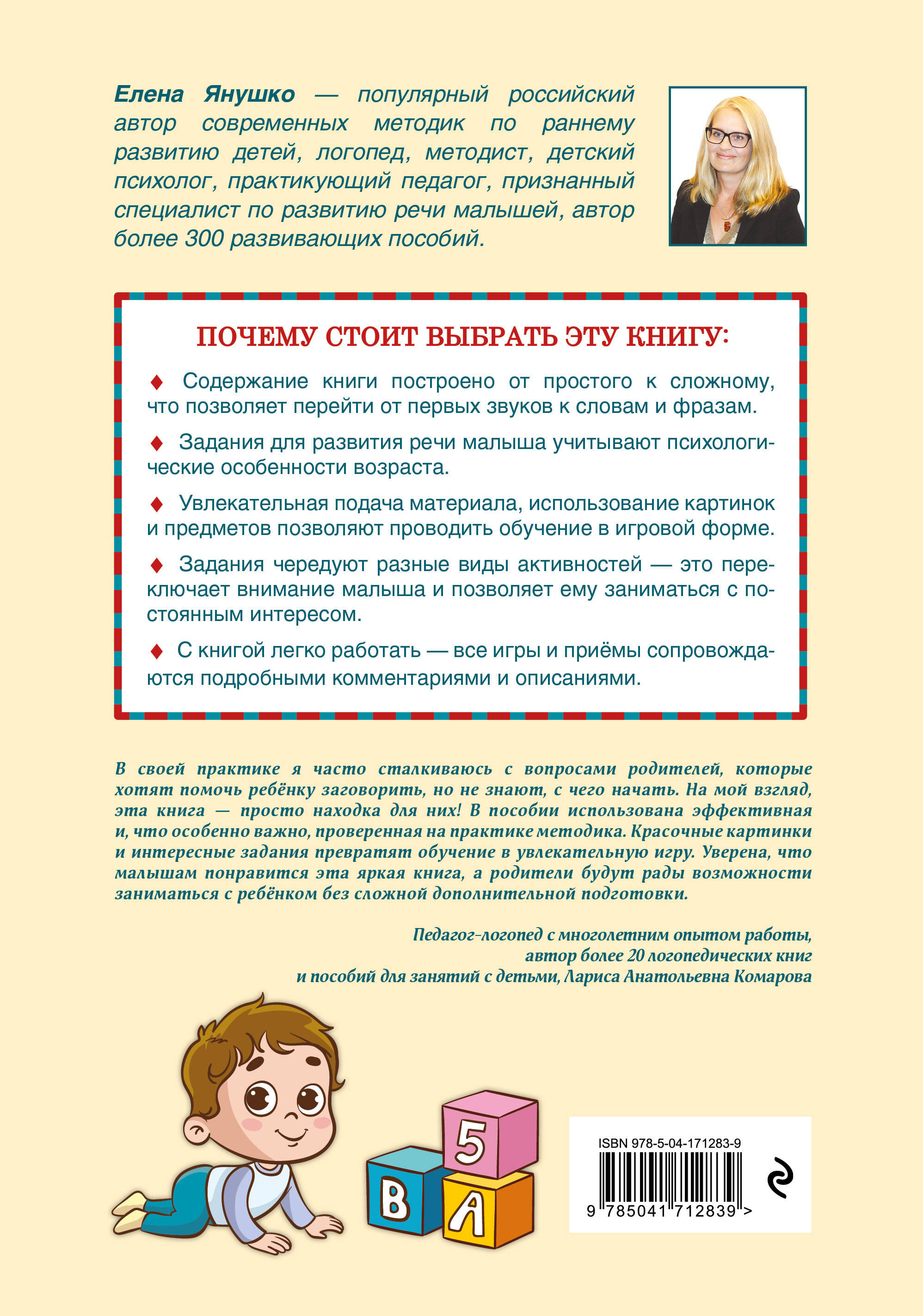 Запуск речи - очень важная тема для родителей, у которых растет ребенок. Книга популярного российского автора Елены Янушко - это практическое пособие для тех, кто хочет помочь своему малышу научиться говорить. В книге собраны упражнения и игровые задания, разработанные с учетом психологических особенностей и интересов мальчиков и девочек в возрасте 1-2-3 лет. Увлекательная подача материала и использование красочных иллюстраций позволяет проводить обучение в игровой форме. Все задания и приемы сопровождаются подробными комментариями и описаниями. Красочная книжка с картинками обязательно понравится вашему малышу, а удобный формат развивашки идеально подойдет для занятий дома, на прогулке или в дороге. Это развивающее пособие и тренажер по запуску речи от издательства «Эксмо» станет прекрасным подарком для ребенка.| Издательство | ООО "Издательство "Эксмо" |