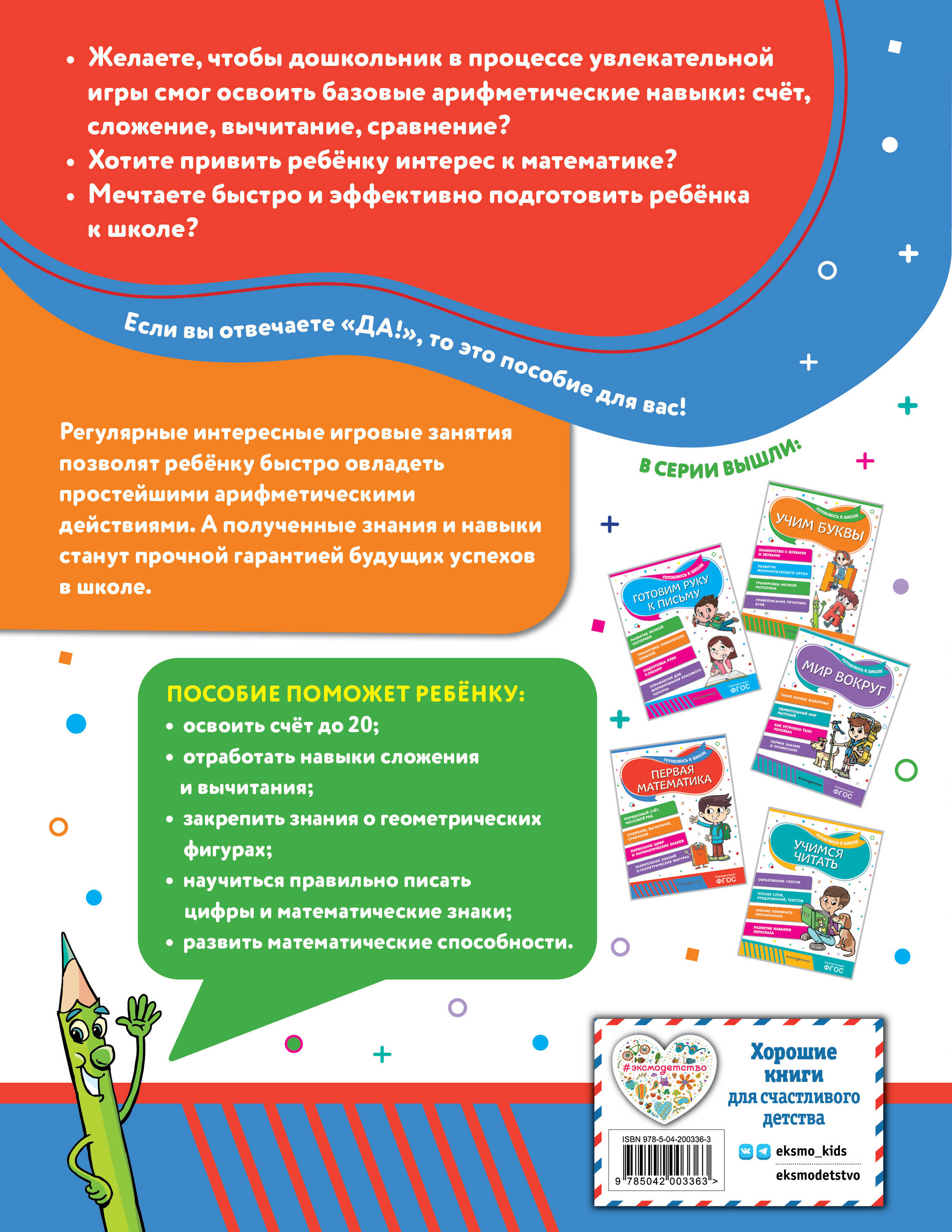Подготовка к школе должна помочь ребенку созреть интеллектуально для нового этапа жизни. А это заложит основу его дальнейшего роста. С помощью представленных в книге игровых заданий родители и педагоги смогут наиболее эффективно организовать развивающие занятия по подготовке ребенка к будущему обучению. Выполняя увлекательные упражнения, дошкольник научится считать, познакомится с понятиями «числовой ряд» и «порядковый счёт», потренируется выполнять простейшие арифметические действия (сравнение, сложение, вычитание) с опорой на наглядность и решать несложные задачи, будет самостоятельно писать цифры, закрепит знания о геометрических фигурах и навыки ориентации на листе бумаги. Кроме того, ребенок сможет расширить свои познания в области математики, развить логическое мышление, мелкую моторику и память, стать более внимательным и организованным, а главное, уверенным в своих силах и положительно настроенным к обучению. Книга издательства «Эксмо» позволит ребенку закрепить все эти навыки и умения, а также реализовать заложенные в нем таланты.| Издательство | ООО "Издательство "Эксмо" |