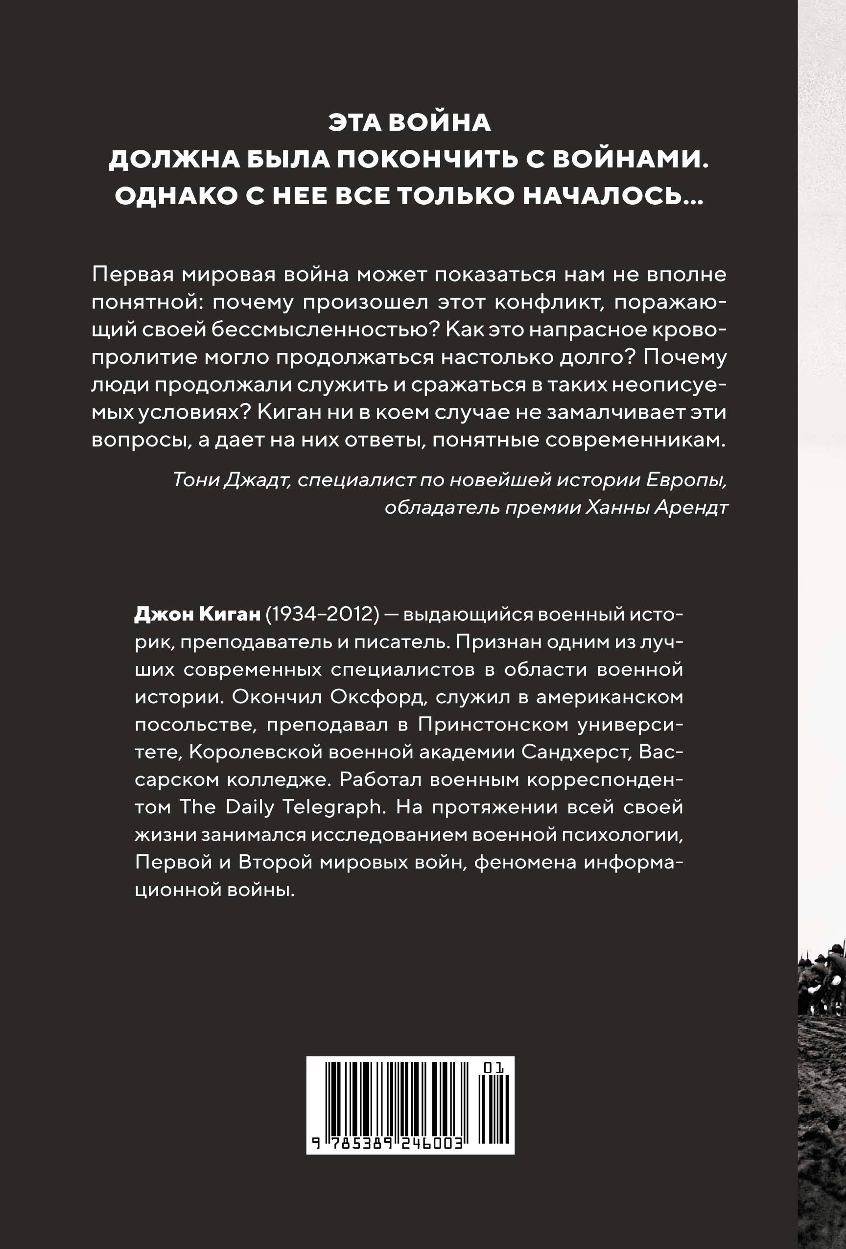 В июне 1914 года каждый человек в Европе был уверен, что кровопролитие больше не затронет его жизнь, однако затем роковой выстрел разрушил мир, казавшийся долговечным. Франц Фердинанд, наследник Австро-Венгрии, прибыл в Сараево с официальным визитом. Его предупреждали, что поездка опасна. Он не прислушался к советам и поплатился за это жизнью. Убийство Франца Фердинанда и его жены сербскими заговорщиками послужило поводом к войне, которую еще долгие годы будут называть Великой войной. Она нанесла серьезный ущерб рациональной цивилизации европейского Просвещения и стала зловещим предзнаменованием Второй мировой войны. Авторитетный британский историк Джон Киган показывает процветающий мир накануне 1914 года и глубоко анализирует причины и последствия Великой войны. Она повлекла за собой расовую ненависть, политическую вражду, разрушение европейской культуры, гибель 10 миллионов человек, ознаменовала провал дипломатии. "Все самое худшее, что видел XX век, уходит корнями в хаос, порожденный Первой мировой войной" (Джон Киган). Ранее книга издавалась под заголовком "Великая война. 1914-1918".| Издательство | Азбука-Аттикус Издат.группа ООО |