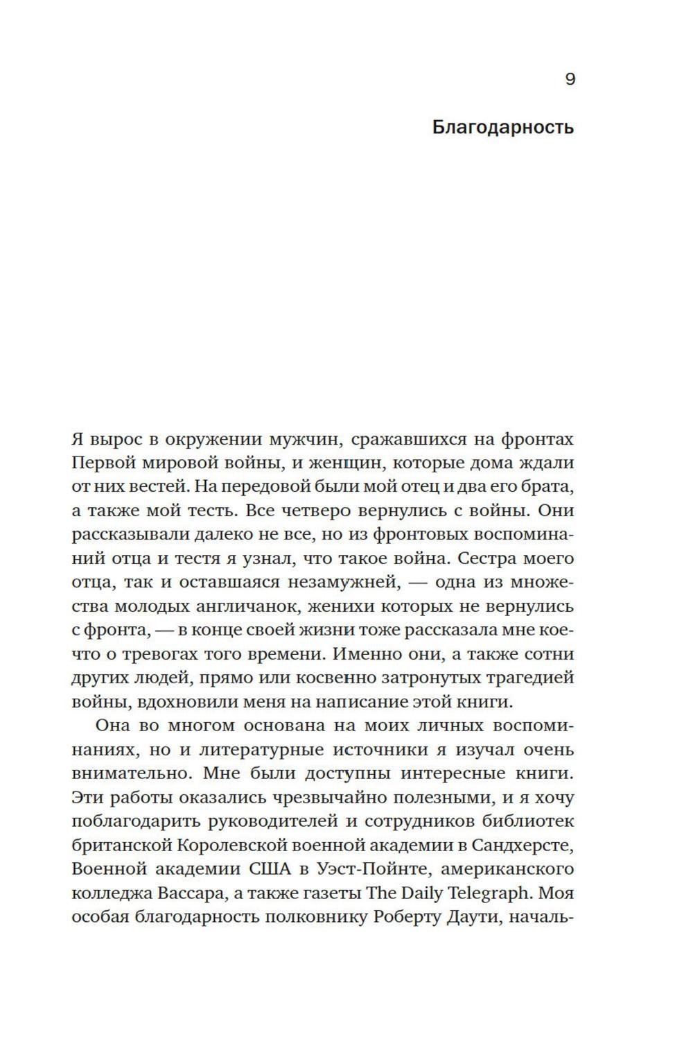 Летом 1914 года в Сараево сербский студент Гаврило Принцип убил наследника австро-венгерского престола Франца Фердинанда. Локальный конфликт на Балканах перерос в Великую войну, которая унесла миллионы жизней, разрушила империи и привела к политическому хаосу, повлекшему за собой Вторую мировую войну. Химическое оружие, изнуряющие позиционные бои, этнические чистки - все это Первая мировая война. Она навсегда изменила мир, при этом никто не вышел из войны победителем. Так закончился «долгий XIX» и начался «короткий ХХ» век - эпоха диктатур, тотальных войн и геноцидов. Британский историк Джон Киган создает масштабное полотно, в котором военно-политический анализ переплетается с личными историями. «Хроника сражений составляет самые мрачные страницы военной истории. Мы не услышим громких фанфар в память миллионов, встретивших свою смерть на унылых равнинах Пикардии и Польши, или молебнов за их лидеров, развязавших эту бойню. Политические результаты по сравнению с понесенными жертвами ничтожны. Разрушенная Европа перестала быть центром мировой цивилизации, христианские королевства уступили место безбожным тираниям». (Джон Киган)| Издательство | КоЛибри |