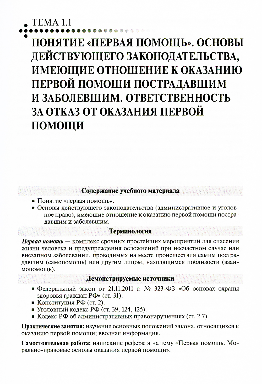 Учебник содержит основные сведения по оказанию первой помощи при травмах и заболеваниях в соответствии с программой учебной дисциплины «Первая помощь» для специальностей 31.02.03 «Лабораторная диагностика» и 31.02.05 «Стоматология ортопедическая». В материале подчеркивается чрезвычайно важная роль человека, который раньше других оказался около пострадавшего и правильно оказал первую помощь, а также значение соответствующей психологической подготовки обучающихся. Большое внимание уделено современным подходам с доказанной эффективностью, нашедшим отражение в руководствах международного уровня, принципам медицинской сортировки. Представлены новые технические средства и материалы медицинского назначения. Автор книги - высококвалифицированный врач с большим клиническим опытом, много лет занимавшийся обучением приемам первой помощи. Учебник предоставляет возможность организовывать и проводить занятия по первой помощи для среднего медицинского персонала, он может быть полезен студентам медицинских вузов; практикующим врачам; преподавателям, занятым обучением первой помощи в автошколах, общеобразовательных школах, на производствах, а также широкой аудитории читателей, интересующихся данной проблемой.| Издательство | ГЭОТАР-Медиа |