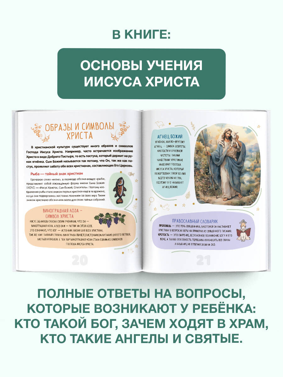 Дорогие родители, наверняка ваши дети задают вам самые разные вопросы о Боге и вере, но иногда бывает достаточно сложно ответить на них. Ведь объяснить такие важные и глубокие духовные темы понятным языком не так просто. Данная книга призвана помочь вашему ребёнку приоткрыть дверь в мир православной веры - она расскажет ему о Боге и Церкви, причём сделает это совсем не скучно и очень наглядно. Юный читатель получит ясные и доходчивые ответы на множество волнующих вопросов: Кто такой Бог и почему люди в Него верят, для чего мы ходим в храм, зачем там ставят свечи, кто изображен на иконах, как правильно молиться, кто такие Ангелы и святые, какой самый главный православный праздник. Также на страницах этой энциклопедии рассказано об устройстве храма и правилах богослужения, о Святых Таинствах и православных традициях, о Священном Писании и учении Господа Иисуса Христа. Кроме того, важнейшие символы и духовные понятия здесь не только объяснены кратко и максимально доступно для ребёнка, но и красочно проиллюстрированы, что поможет лучше их представить и понять, а также пробудить любовь и уважение к православной вере. Для младшего и среднего школьного возраста.| Издательство | Издательство "АСТ" |