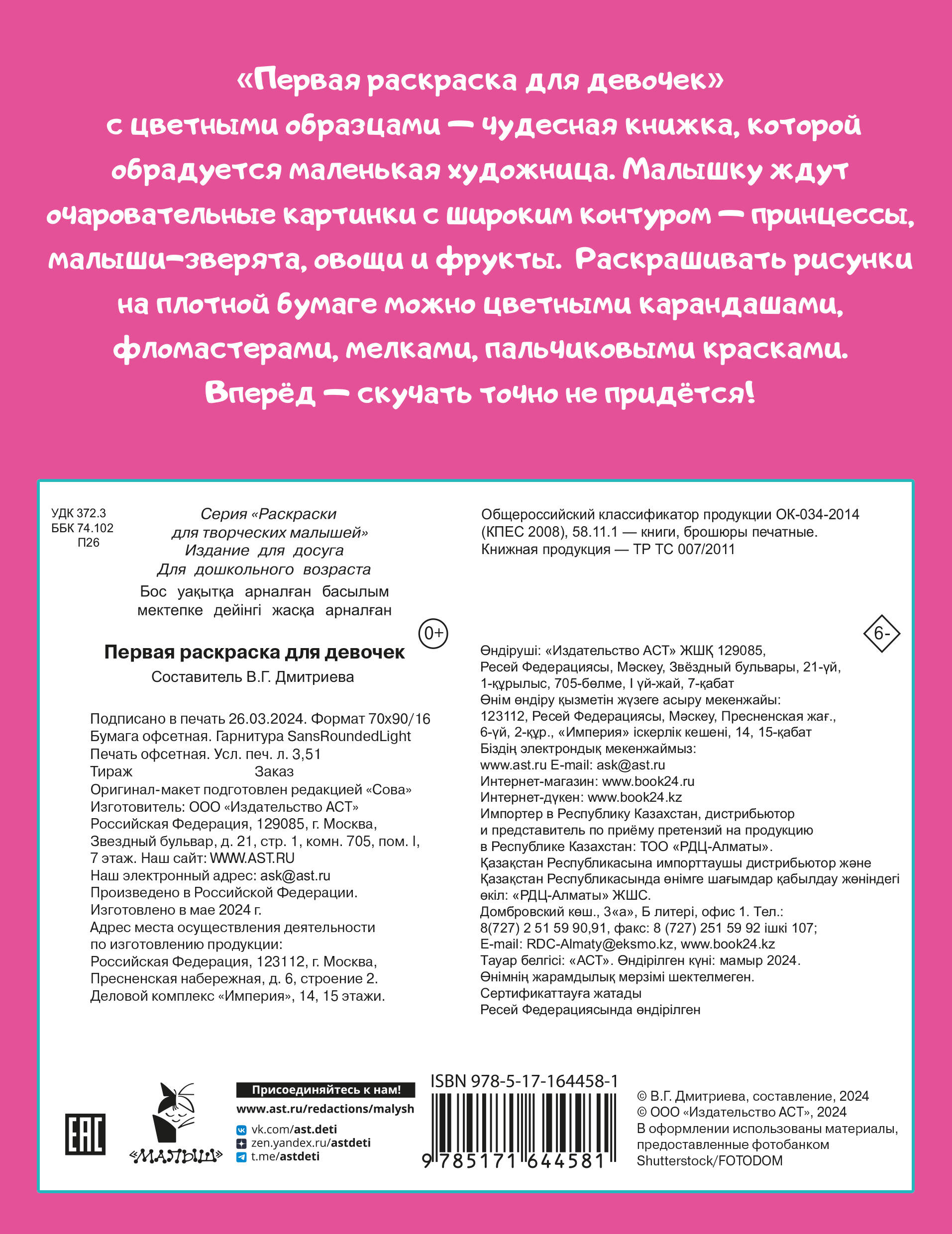 Аннотация: Первая раскраска для девочек