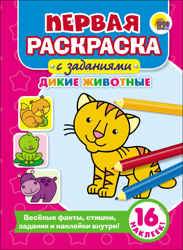Эта раскраска станет отличным подарком для малыша, ведь в ней есть всё, что так нравится детям: наклейки, яркие цветные странички, симпатичные рисунки с толстым контуром, весёлые стишки, задания и факты! Работать с раскраской можно таким образом: 1. Показать ребёнку картинку и прочитать стишок. 2. Выполнить задания, представленные в нижней части страницы. 3. Предложить ребёнку раскрасить картинку. 4. Найти на вкладыше с наклейками нужный рисунок и приклеивать его внизу странички.| Издательство | Проф-Пресс Издательский Дом ООО |