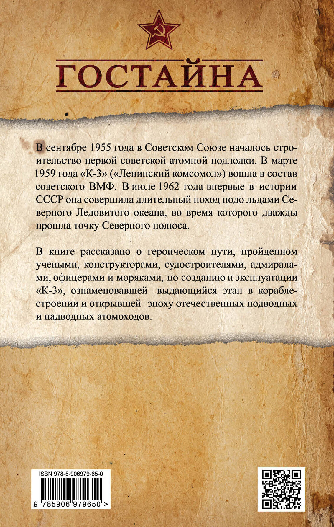 В сентябре 1955 года в Советском Союзе началось строительство первой советской атомной подлодки. В марте 1959 года "К-3" ("Ленинский комсомол") вошла в составе советского ВМФ. В июле 1962 года впервые в истории СССР она совершила длительный поход подо льдами Северного Ледовитого океана, во время которого дважды прошла точку Северного полюса. В книге рассказано о героическом пути, пройденном учеными, конструкторами, судостроителями, адмиралами, офицерами и моряками по созданию и эксплуатации "К-3", ознаменовавшего выдающийся этап в кораблестроении и открывшего эпоху отечественных подводных и надводных атомоходов.| Издательство | ТД Алгоритм ООО |
