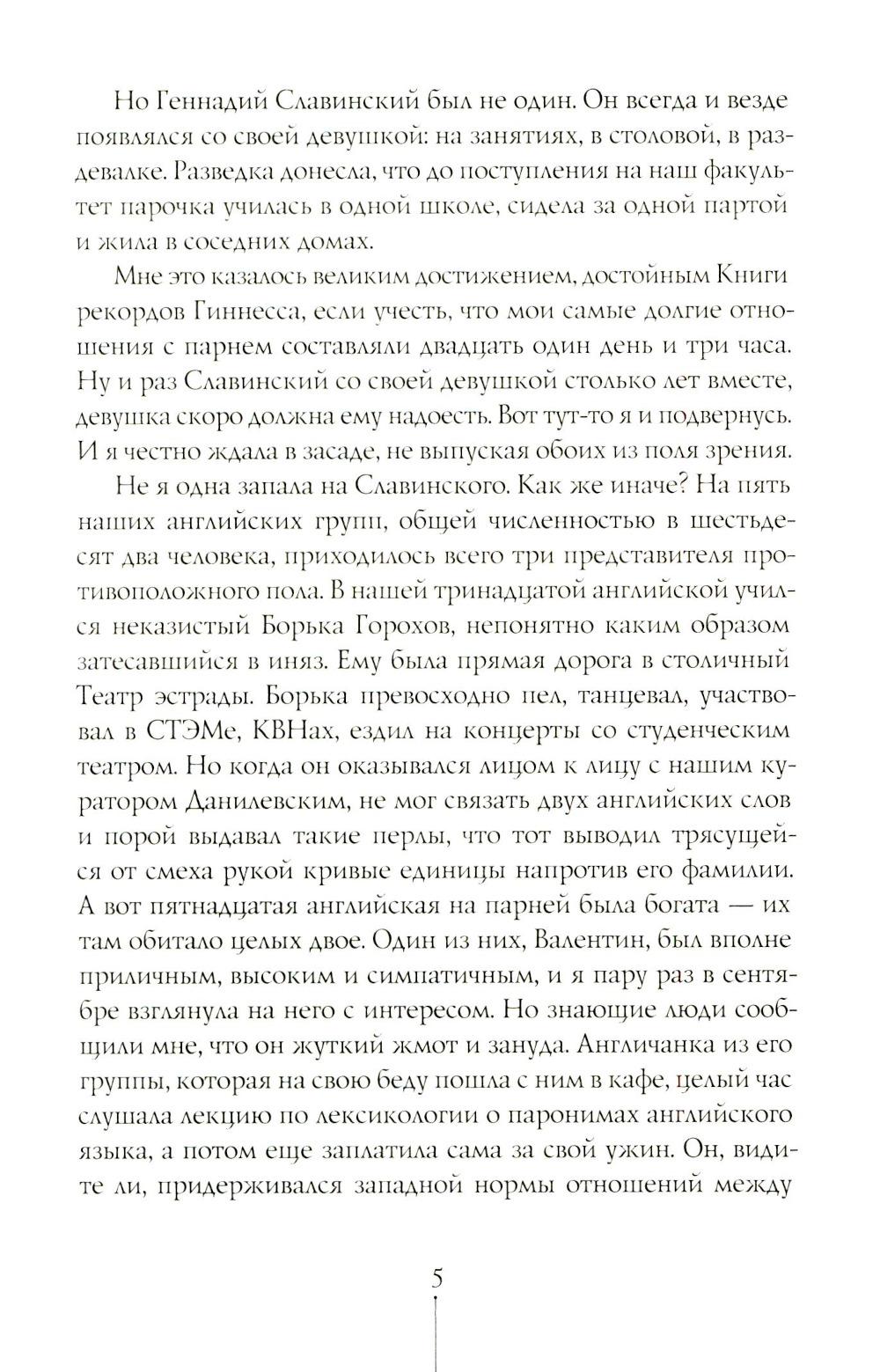 У 17-летней студентки Саши кружится голова от той свободы, что свалилась на нее с поступлением в университет. Поток новых знакомств, непривычное «вы» от преподавателей, учеба и влюбленности, вечеринки и праздники - и каждый день приносит открытие о самой себе, о родных, друзьях и случайных знакомых. Жизнь настолько полна событиями, что героине порой не верится в реальность происходящего. Всеми силами отбивать парня у «соперницы», удирать от бандитов через забор, чуть не погибнуть в заснеженном овраге и в упор не видеть рядом настоящую, верную любовь. «Первокурсница», как и другие книги Виктории Ледерман, насыщена сюжетными поворотами. Череда приключений слегка безрассудной студентки увлекательна сама по себе, но особенно интересно то, как события меняют героиню, как она обретает опыт. На последней странице Саша скажет: «Я в этой жизни ничего не понимаю» - а такие слова всегда доказывают обратное. «Первокурсница» - первая из многих книг Виктории Ледерман, которая написана для 16-18-летних читателей. Она выдержала уже несколько изданий и теперь выходит в новом оформлении. Другие произведения писательницы - «Удивительная девочка», «Уроков не будет», «К доске пойдет...Василькин!», «Календарь ма[й]я» и повести о Светлике Тучкине - стали бестселлерами среди читателей от дошкольников до| Издательство | ИД КомпасГид |