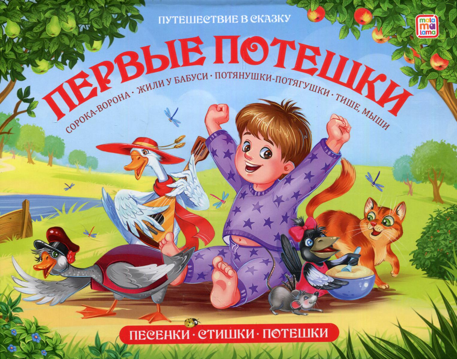«Первые потешки» - книга с потешками и стихами от торговой марки Malamalama, которая подарит прекрасное настроение малышам и их родителям. Яркие персонажи, красочные иллюстрации, знакомые с детства сюжеты - всё это поможет вам окунуться в мир детства вместе с вашим ребёнком! Читайте и проводите время вместе весело и с пользой!