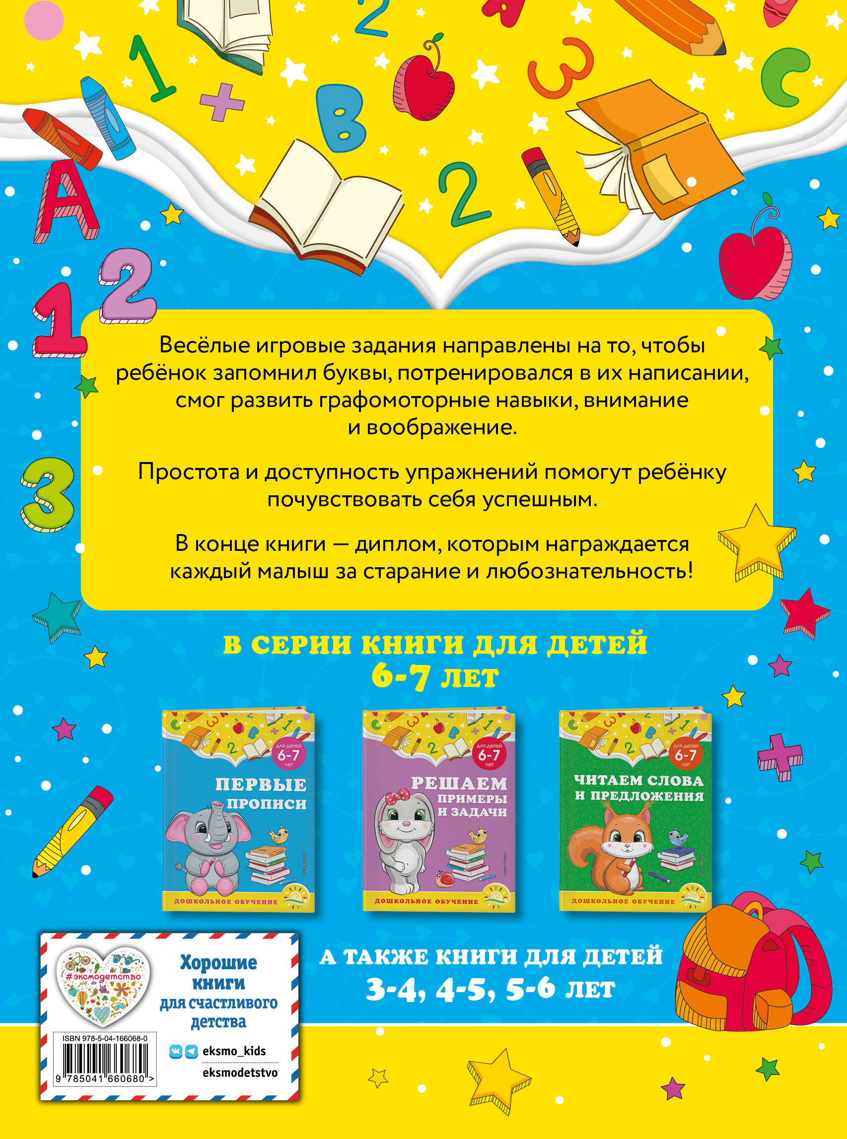 Благодаря пособию ребенок быстро научится писать печатные буквы, сможет потренировать внимание, память и воображение, станет более усидчивым и аккуратным. Все задания направлены на то, чтобы ребенок развил мелкую моторику и навык письма в процессе веселой игры. Добрые красочные иллюстрации помогут увлечь ребенка интересным и полезным занятием. Закончив выполнять задания в книге, ребенок получит заслуженную награду - дипломом за успехи, - которая повысит его самооценку.| Издательство | Эксмо |