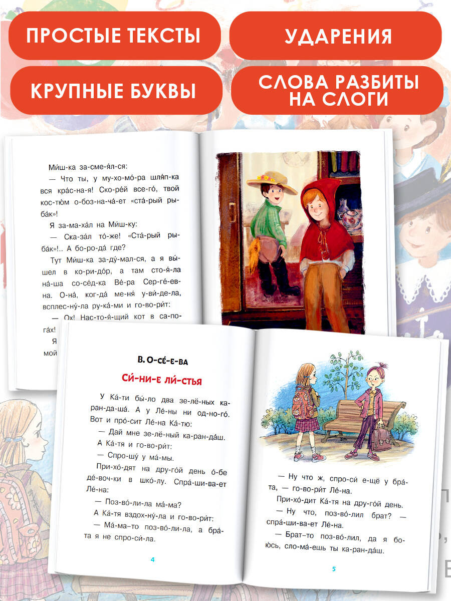 Как сделать первое знакомство малыша с книгой комфортным и интересным? Как помочь ему не только научиться читать, но и полюбить литературу? Серия «Читаю без мамы по слогам» - отличный вариант для первого знакомства с книгой. Яркие иллюстрации, произведения лучших детских авторов и увлекательные упражнения сделают занятия не только полезными, но и увлекательными. Слова по слогам и с ударениями позволят малышу самостоятельно познакомиться с историями из золотого фонда мировой литературы. В этой книге собраны увлекательные и небольшие истории авторов В. Осеевой, В. Драгунского и Э. Успенского. Они идеально подойдут для первого чтения, не дадут малышу заскучать или переутомиться. Книга станет отличным подарком для вашего сына или дочки. Читайте с пользой и удовольствием!| Издательство | Издательство "АСТ" |