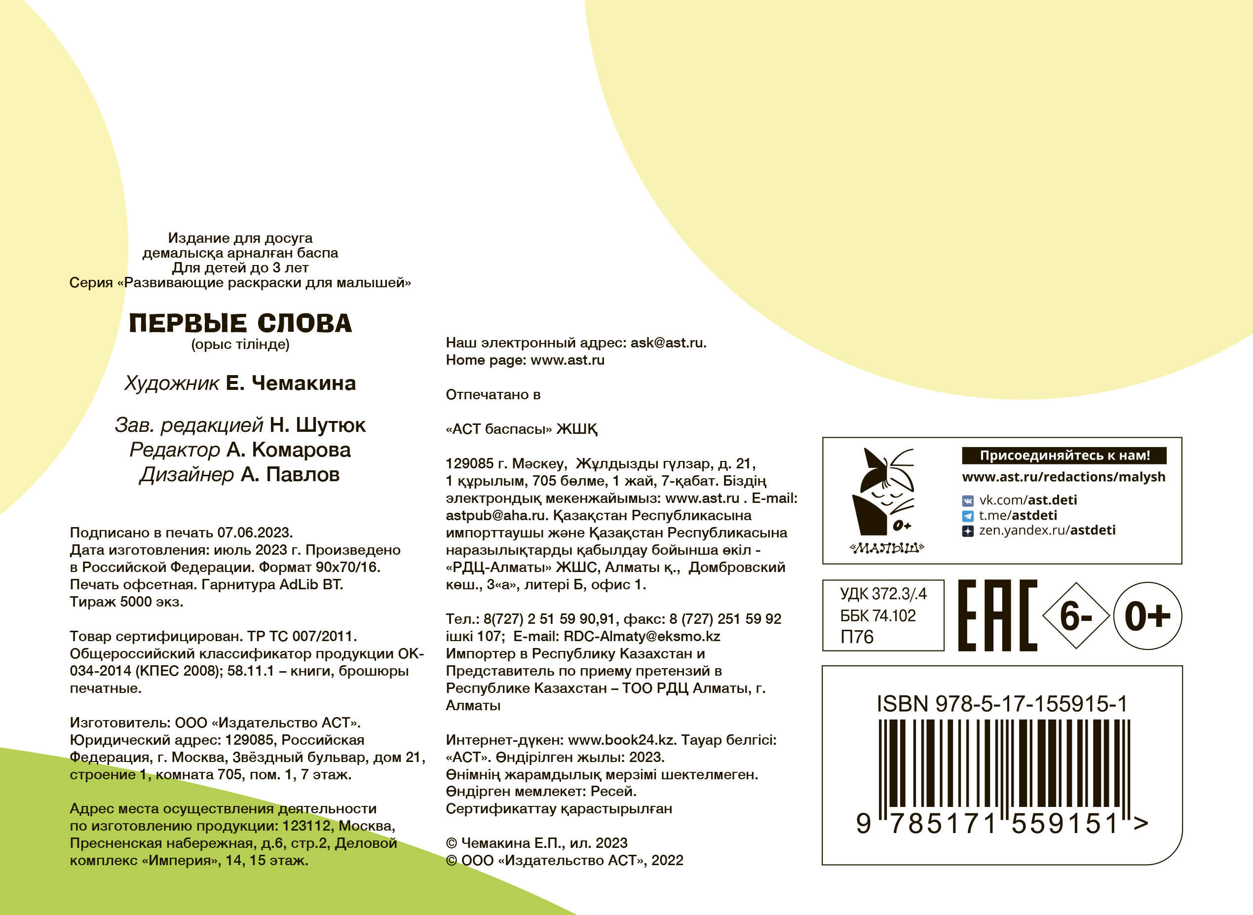Все без исключения малыши любят рисовать и раскрашивать. Серия "Развивающие раскраски для малышей" поможет занять ребенка в дороге и дома, развеселить его, а еще - развить художественный вкус, усидчивость, внимательность и мелкую моторику. На каждом развороте вас ждут яркие картинки-образцы и контуры для раскрашивания с крупными деталями. Малыш может раскрасить по образцу или придумать собственное цветовое решение. Даже сами названия предметов и животных можно раскрасить! Раскраска поможет развить усидчивость, мелкую моторику, образное мышление ребенка, а также познакомит его с окружающим миром. Для детей до 3-х лет.| Издательство | ИЗДАТЕЛЬСТВО "АСТ" |