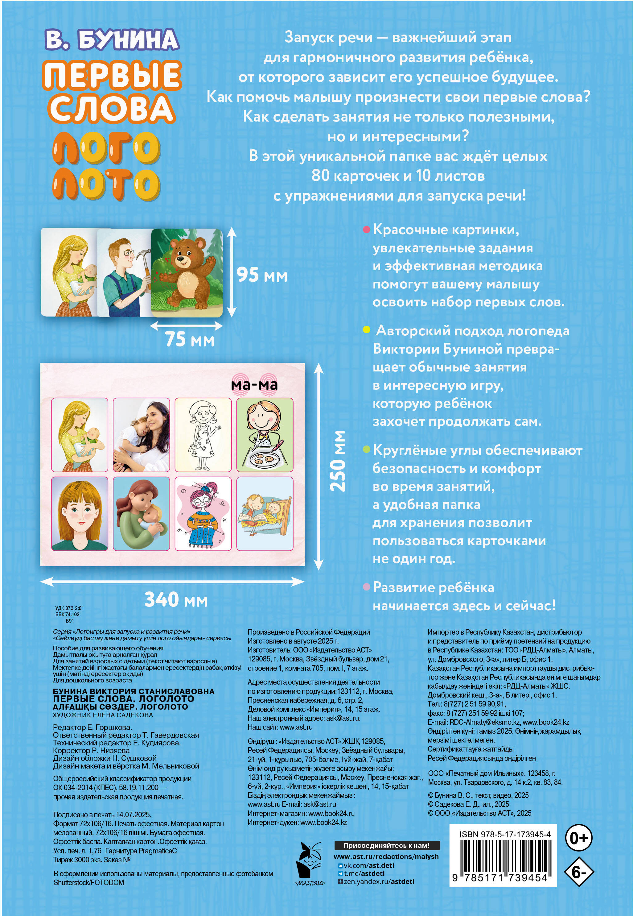 Как важно, чтобы малыш вовремя сказал свои первые осознанные слова! Ведь для развития речи природа отвела очень короткий срок. Что делать, если первые слова никак не хотят появляться у вашего сына или дочки? Очень важна помощь опытного специалиста, детальная диагностика. Так как причин безречья много. Виктория Бунина - логопед с 20-летним опытом работы, автор методики запуска речи у детей. Уже более 10 тысяч благодарных родителей воспользовались ее методикой и добились эффективных результатов. Данное пособие создано на основе этой методики для того, чтобы помочь активизировать первые слова детей с темповой задержкой речи. Задания составлены с учётом основных психологических механизмов речи, что позволяет эффективно стимулировать речевое развитие малышей от 1 года до 3 лет. Увлекательная игра в логолото увлечет даже самых непоседливых мальчишек и девчонок. Методические рекомендации с простым и понятным описанием этапов занятий и видеоподсказки с дополнительными играми обеспечивают качественный результат. В комплекте 10 листов и 80 карточек с круглёными углами из плотного картона. Целых 5 этапов развивающей игры позволит прочно освоить словесный материал и произнести долгожданные слова. Раннее начало занятий - залог успеха!| Издательство | Издательство "АСТ" |