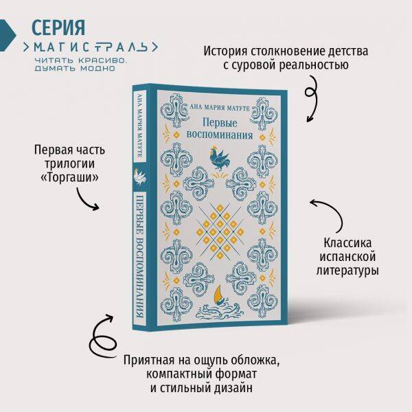 «Первые воспоминания» - классика испанской литературы. Это роман взросления, история столкновения детства с реальностью. По силе его можно сравнить с романом «Над пропастью во ржи» Дж. Сэлинджера. Действие романа протекает на Майорке с красивой природой в страшный военный 1936 год. Главная героиня, Матия, попадает на остров, в чужой дом, в непривычную атмосферу деспотии, которой сопротивляется. Девочка видит, как растет внутренняя агрессия каждого из жителей. Несмотря на тревожную атмосферу, подростки живут приключениями и своими секретами, не утрачивая до конца чистоту, невинность и волшебную силу воображения. Ана Мария Матуте писала в один из самых сложных культурных периодов в истории Испании, период отказа от старой идеологии и создания новых интеллектуальных традиций. «Я пишу, чтобы побудить читателя задуматься, чтобы получить от него ответ, которого я не знаю, чтобы протестовать». - Ана Мария Матуте «Первые воспоминания» - это первая часть трилогии «Торгаши», продолженной романами «Солдаты плачут ночью» и «Ловушка». Ана Мария Матуте - испанская писательница, номинирована на Нобелевскую премию по литературе в 1976 г. Была избрана членом Испанской Королевской академии - третья женщина за 300 лет истории академии. В 2010 году получила премию Сервантеса.| Издательство | ООО "Издательство "Эксмо" |