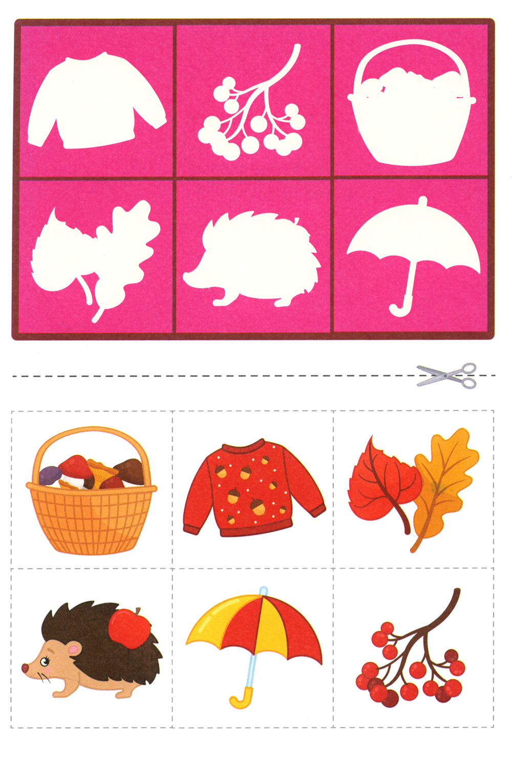 Аннотация: Первые вырезалки. Подбери картинку по тени