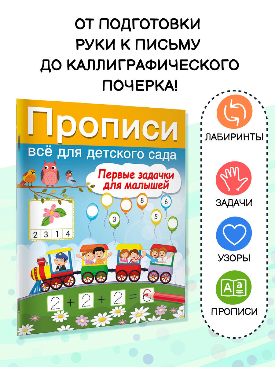 Вашему малышу скоро в школу? Тогда прописи «Первые задачки для малышей» - лучший подарок будущему первокласснику! Они превратят учёбу в увлекательную игру. Занимательные задания помогут ребёнку развить когнитивные навыки и потренироваться в решении первых математических задач. Прописи разработаны согласно ФГОС и с учётом всех физических и психоэмоциональных особенностей ребёнка. Плотная белая бумага, крупные клетки, цветные иллюстрации, разнообразные игровые задачки, - всё это о нашей книге. Книга будет интересна будущим первоклассникам и их родителям. • Через увлекательную форму малыш потренируется в решении первых математических задач. • Очаровательные цветные иллюстрации сделают процесс обучения ещё интереснее! • Прописи помогут ребёнку развить память, внимание и логическое мышление. • Формируется усидчивость и целеустремлённость. • Осторожно: книга прививает любовь к школе! Издание входит в комплект «Прописи: учимся в детском саду», включающий в себя также книги: «Графические диктанты», «Печатные буквы», «Цифры: пишем правильно», - каждая из которых напечатана на качественной офсетной бумаге и содержит 16 страниц с заданиями и цветными иллюстрациями.| Издательство | Издательство "АСТ" |