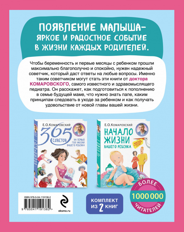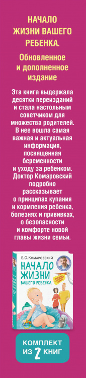 Неважно, стали ли вы родителем в первый раз или ждете четвертого ребенка: сейчас вы на пороге новой жизни, полной радостных и волнительных открытий. Чтобы тревоги и сомнения не взяли вверх, нужна подсказка эксперта и самая полезная информация об уходе за ребенком. Советы доктора Комаровского знает вся страна. В его книгах вы найдете ответы на наиболее актуальные вопросы о подготовке к беременности, ее протеканию и уходе за ребенком в первый год его жизни. В комплект входят книги: Начало жизни вашего ребенка. Обновленное и дополненное издание 365 советов на первый год жизни вашего ребенка| Издательство | Эксмо |