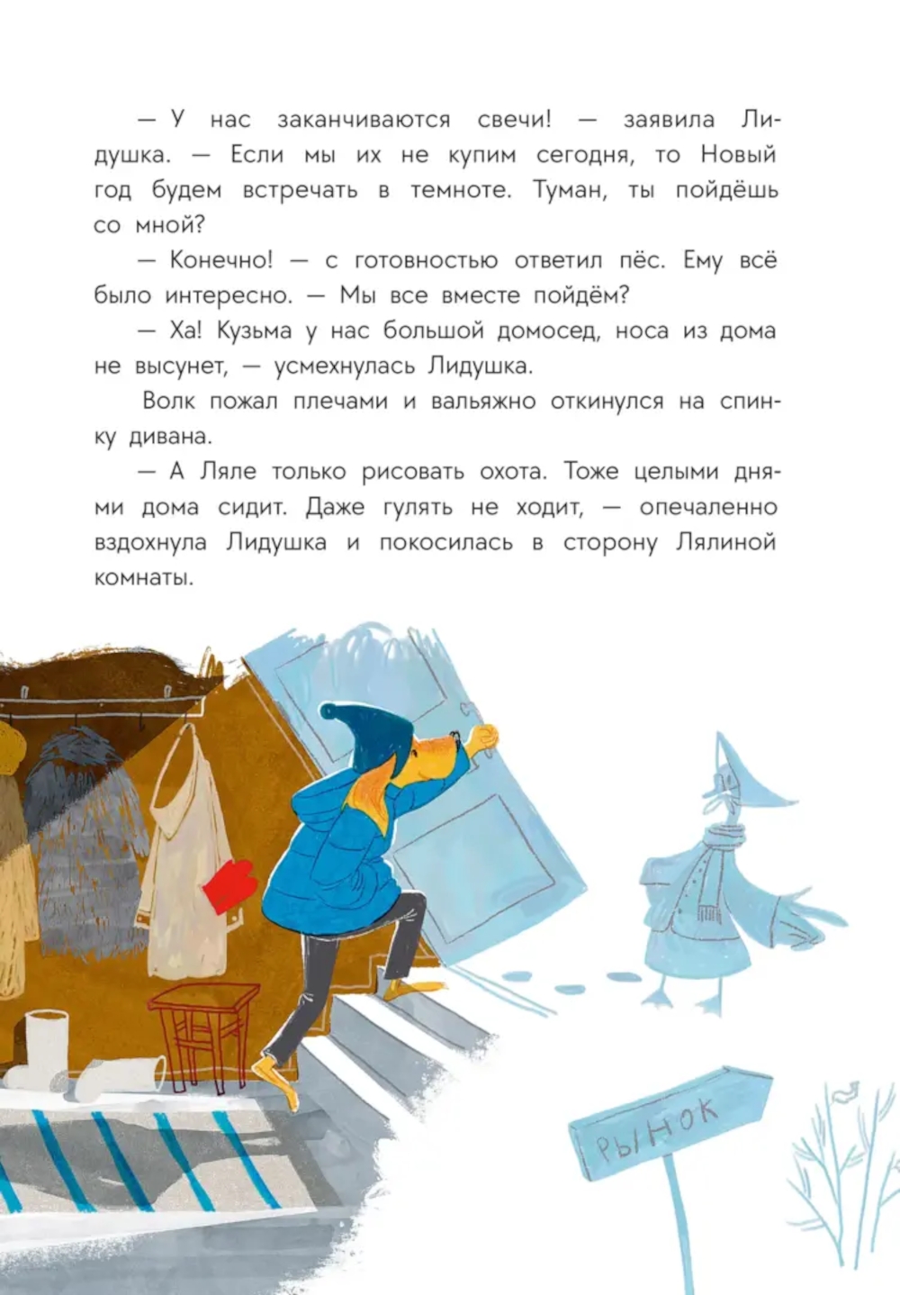 Накануне Нового года домашний пёс Туман отвязался от своей привязи и заблудился в тёмном заснеженном лесу. На его счастье он набрёл на маленький домик доброго волка Кузьмы, который до этого уже приютил у себя гостеприимную и хозяйственную гусыню Лидушку. Туман очень скоро понимает, что он встретил настоящих и верных друзей, но... их новогодние приключения только начинаются!| Издательство | Детская литература |